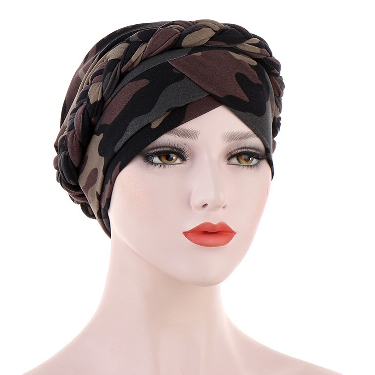 亚马逊爆款 印花磨毛牛奶丝头巾帽花布短辫包头帽后可藏发穆斯林