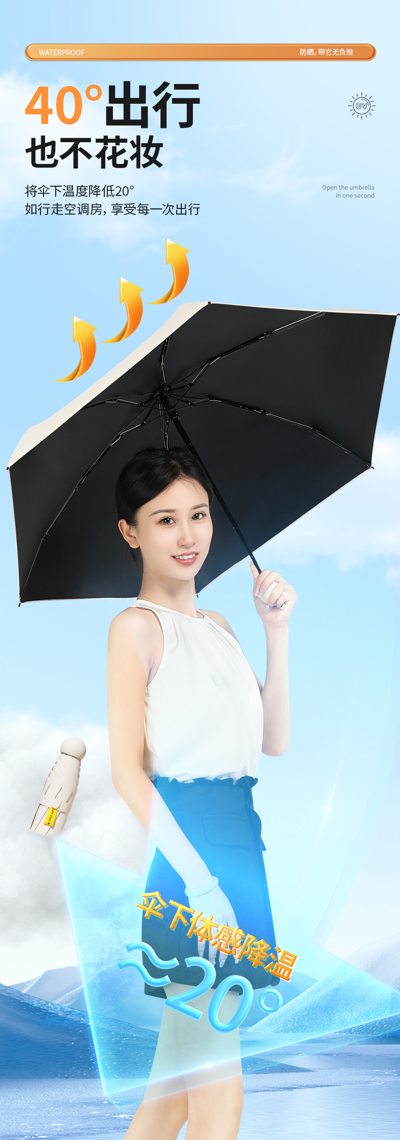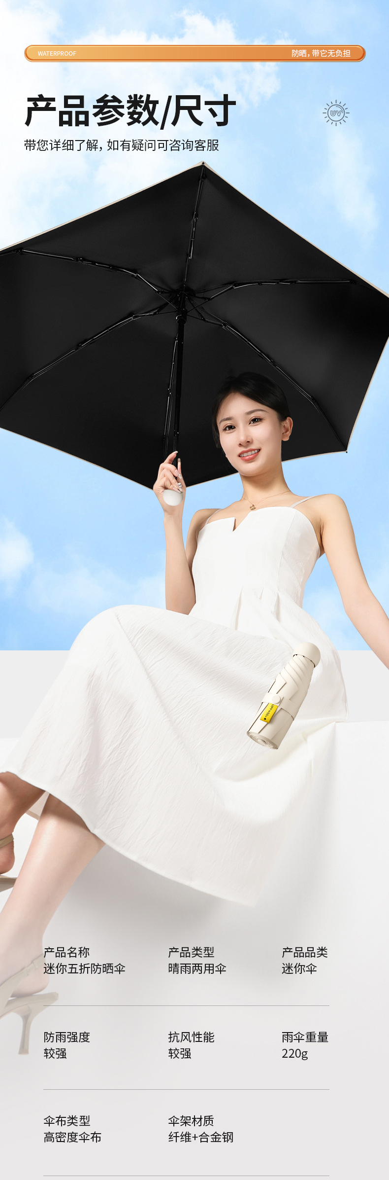 50% 할인 6단 블랙 글로시 파라솔 자외선 차단 햇빛 가리개 접이식 포켓 우산스토어 가기