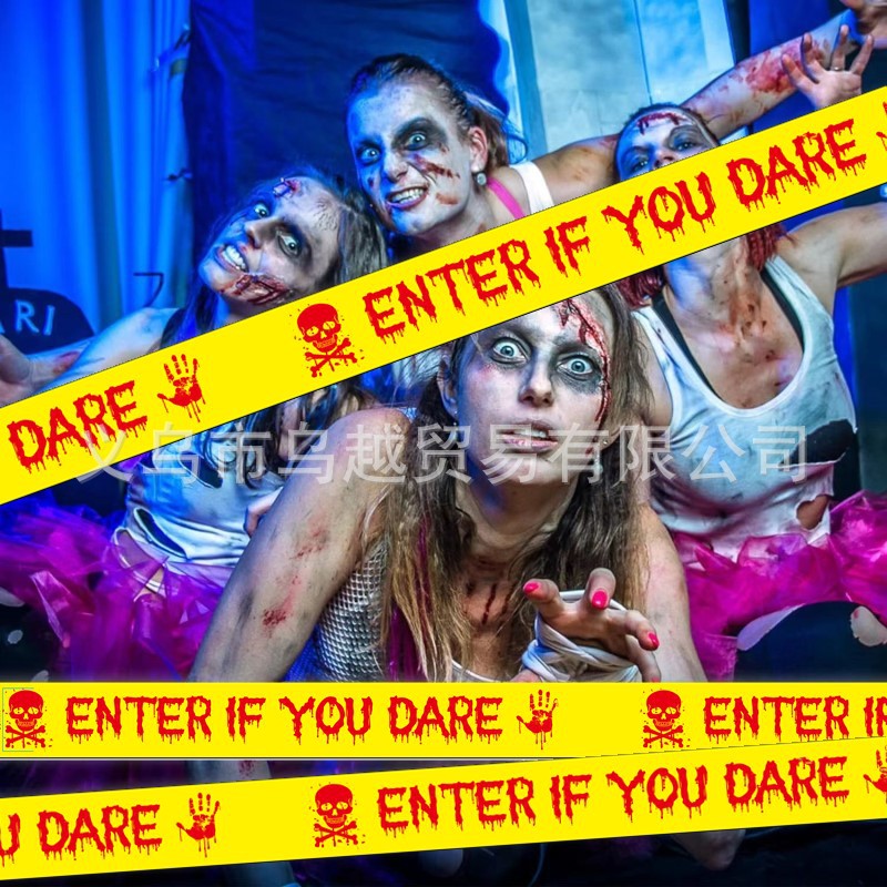 국경 할로윈 경고 테이프 영어 CAUTION 노란색 경고 테이프 DIY 장식 경고스토어 가기