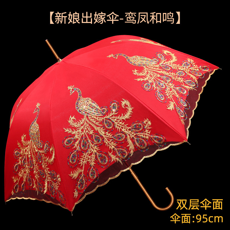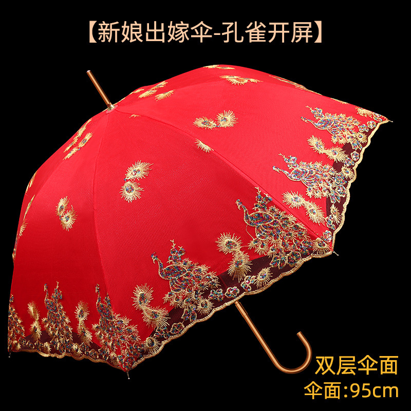 빨간 우산 웨딩 신부 우산 웨딩 하이 엔드 레이스 레이스 자수 큰 빨간 긴 손잡이 축하 우산스토어 가기