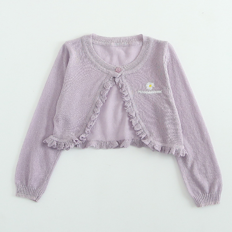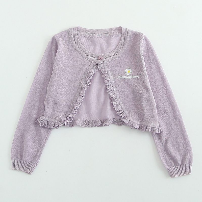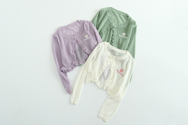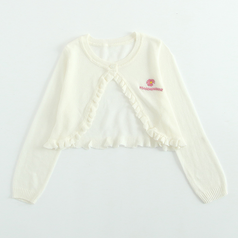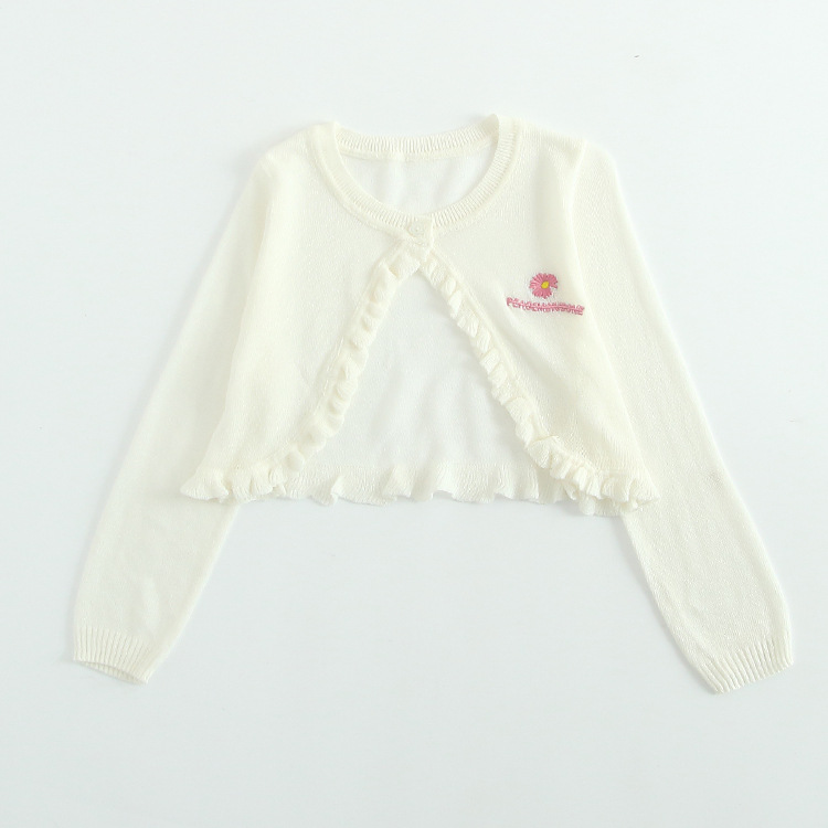아이스 실크 여자 니트 카디건 얇은 코트 선 스크린 에어컨 셔츠 어린이 자수 작은 목도리 여름 도매의 한국판