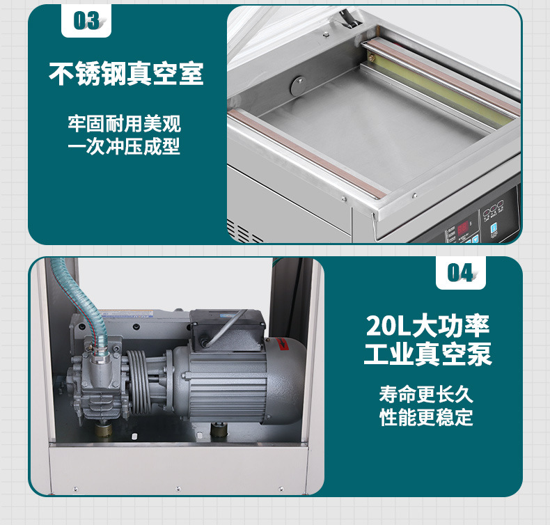 상업용 이중실 식품 진공 포장기, 완전 자동 쌀 블록 조리식품 양매 건식 및 습식 겸용 진공 밀봉기