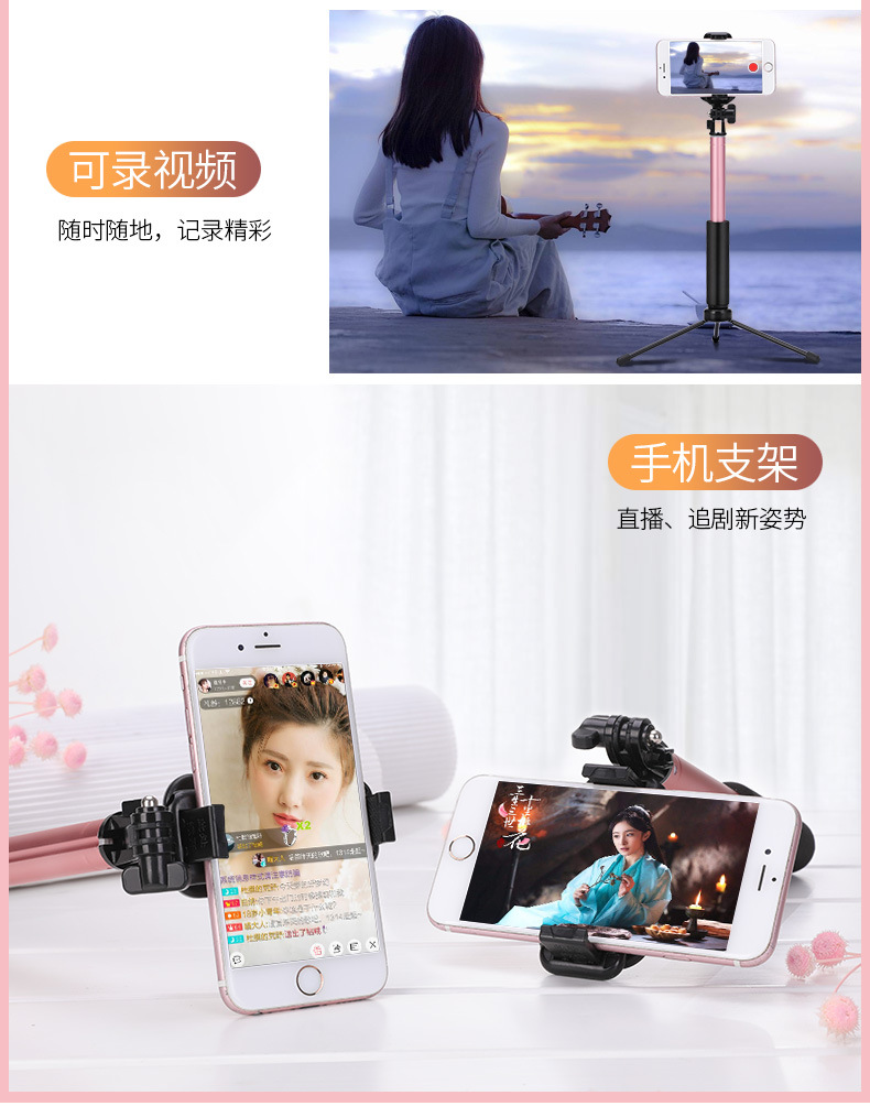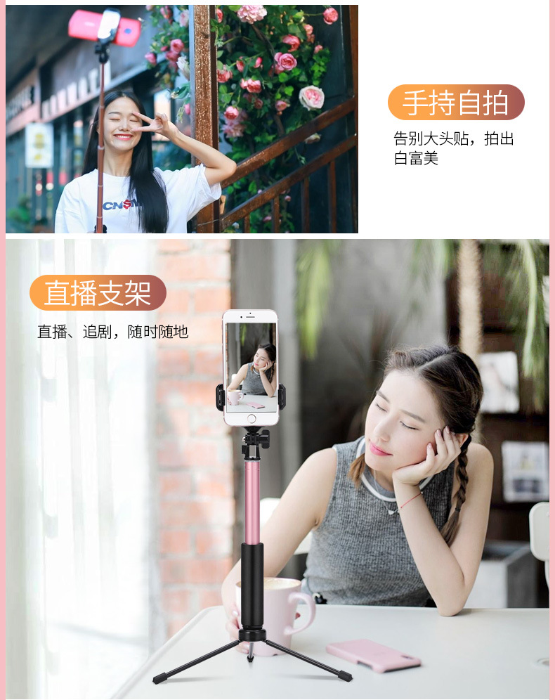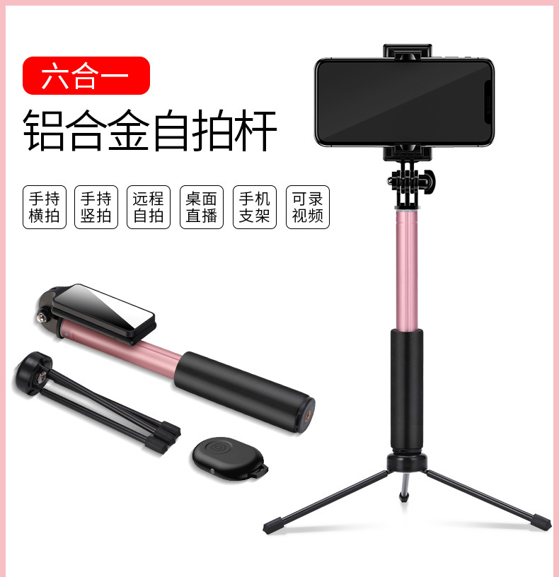국경 간 블루투스 셀카 스틱 알루미늄 합금 원격 제어 사진 텔레스코픽 연장 휴대 전화 라이브 지원 삼각대 통합스토어 가기