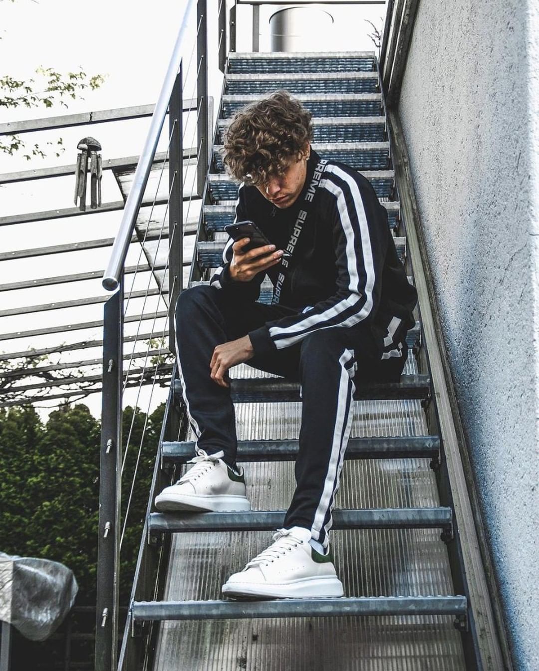 2021 유럽 및 미국 트렌디 브랜드 봄 가을 남성 야외 런닝 캐주얼 배색 피트니스 스포츠 세트 패션스토어 가기