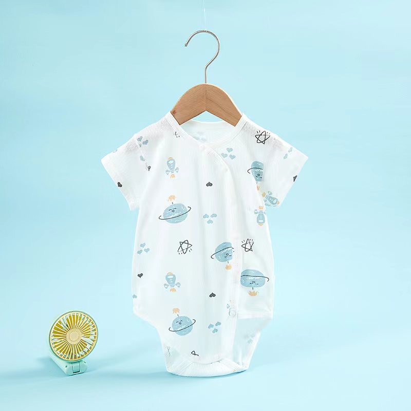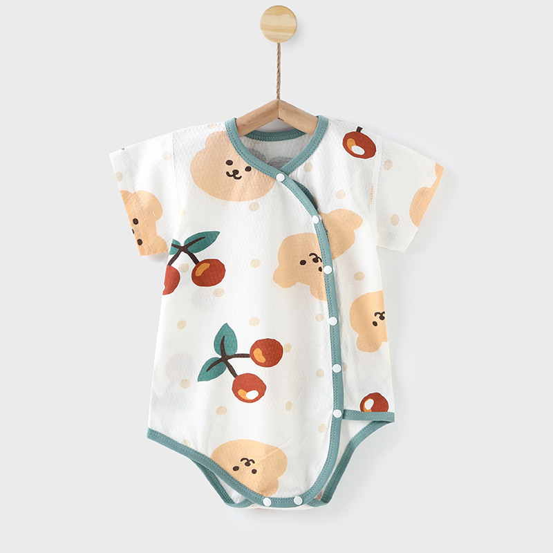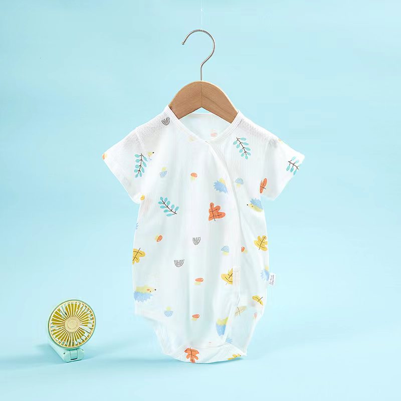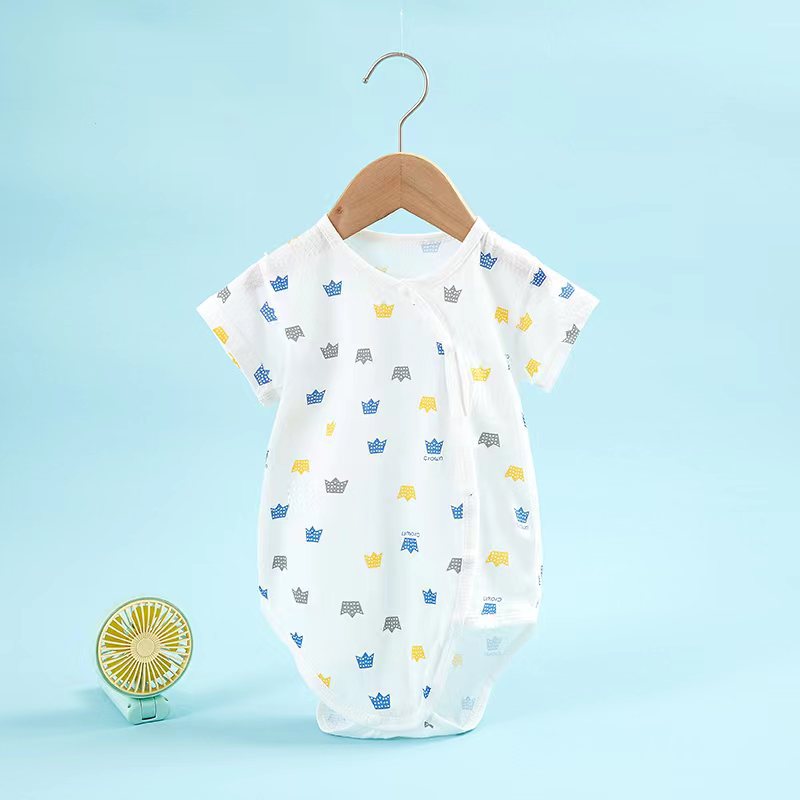아기 점프 슈트 새로운 여름 얇은면 옷 등산 아기 반팔 삼각형 가방 방귀 옷 머리카락의 세대스토어 가기