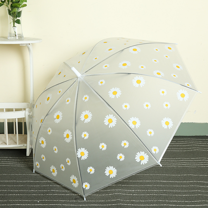 공장 도매 소 데이지 투명 우산 자동 긴 손잡이 생우산 선물 우산 한국 우산 로고