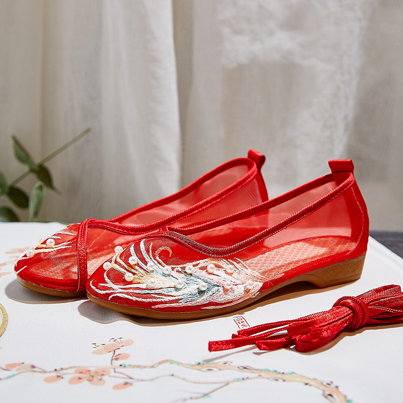 메쉬 신발 골동품 신발 자수 메쉬 신발 라운드 발가락 중공 플랫 자수 신발 샌들스토어 가기