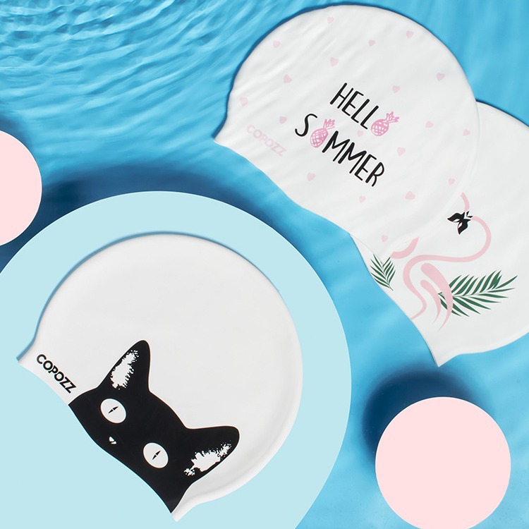 COPOZZ 수영 모자 여자의 긴 머리 귀 보호 큰 머리 없음 성인 남자의 방수 실리콘 수영 모자 유행 귀여운