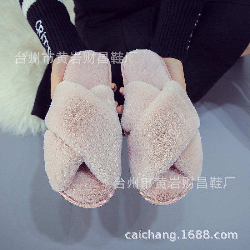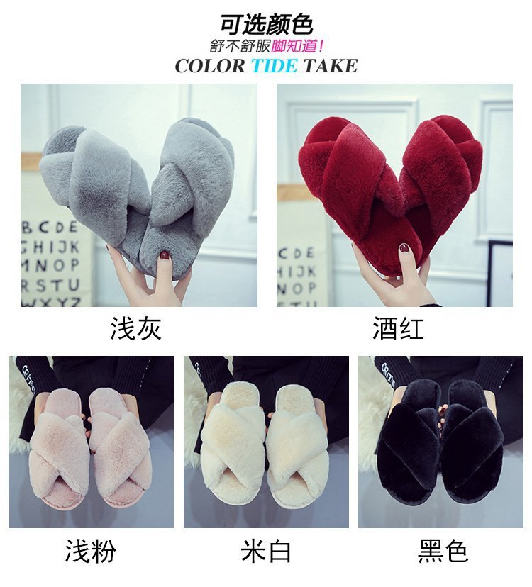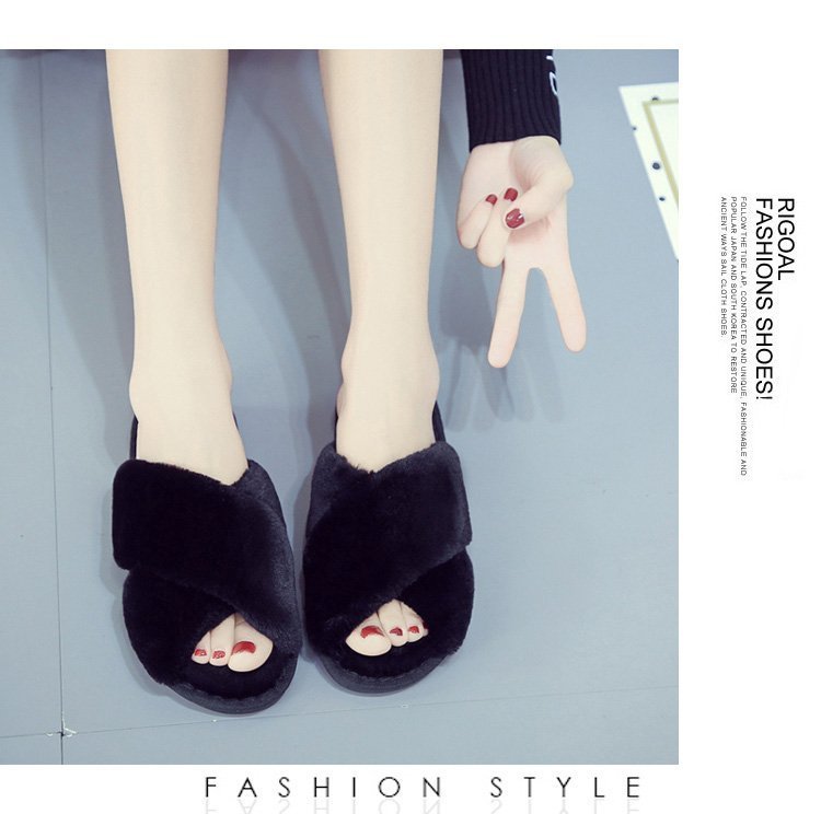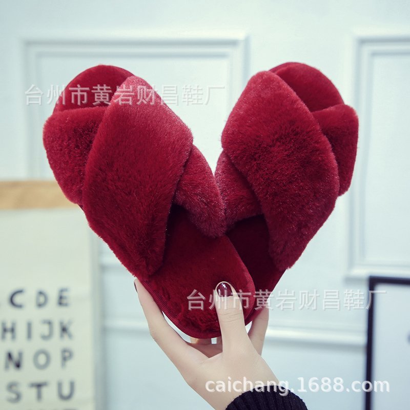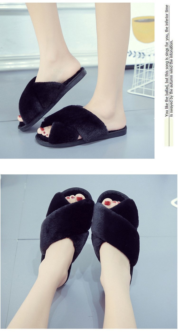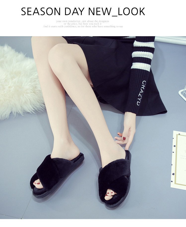 마오 마오 슬리퍼 여성용 겨울 홈 실내 봉제 플랫 바닥 걸레 오픈 발가락 크로스 오버 따뜻한 면 슬리퍼