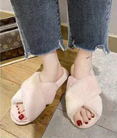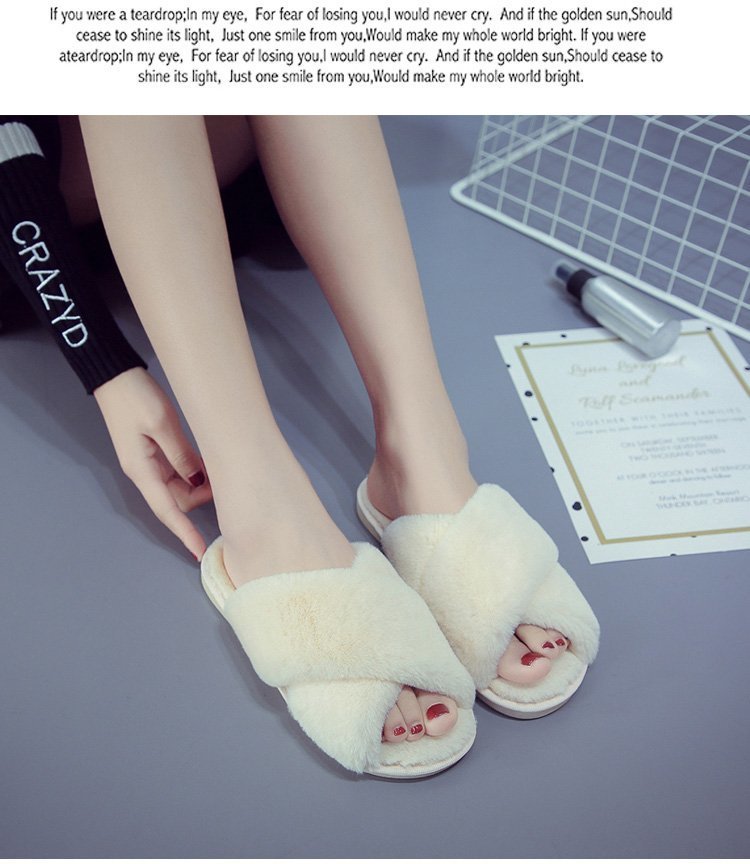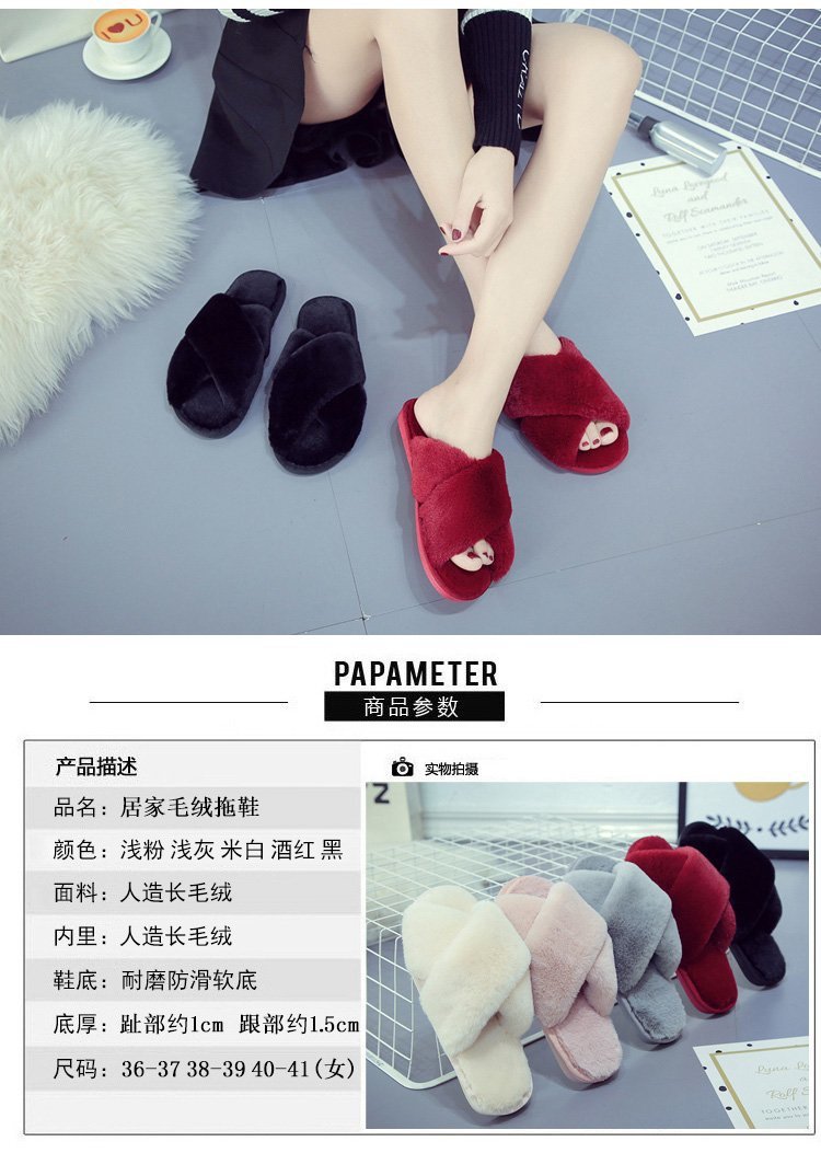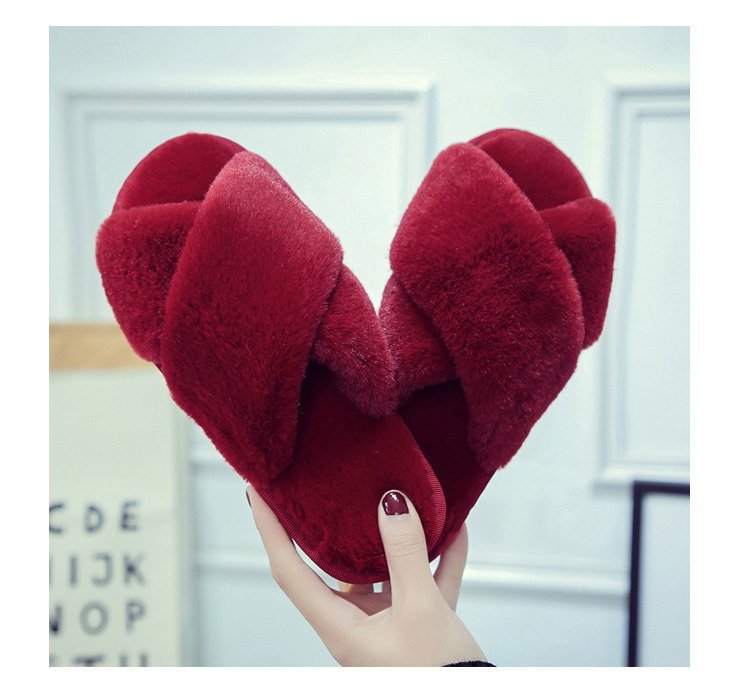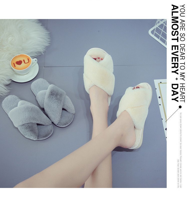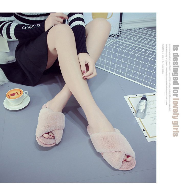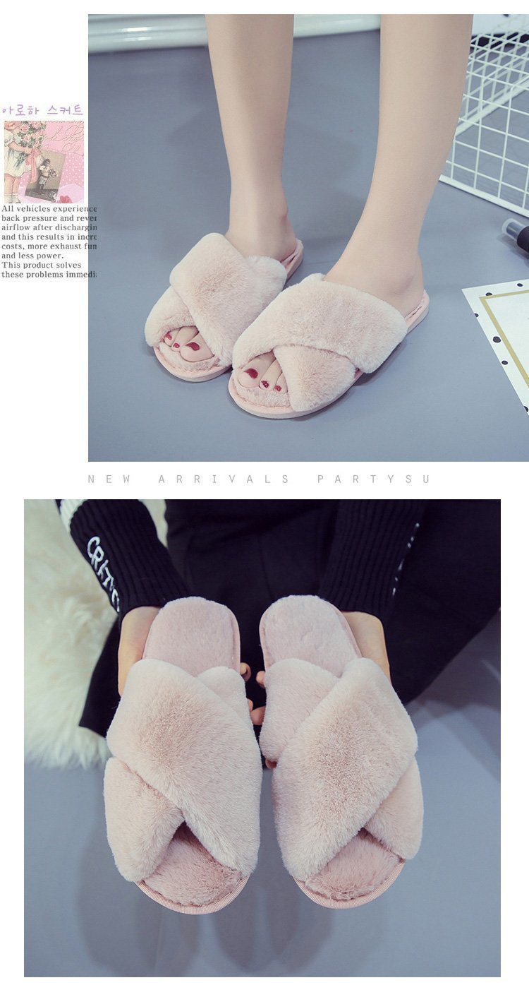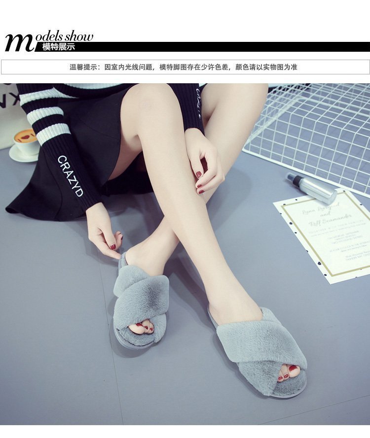 마오 마오 슬리퍼 여성용 겨울 홈 실내 봉제 플랫 바닥 걸레 오픈 발가락 크로스 오버 따뜻한 면 슬리퍼