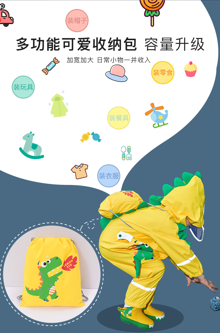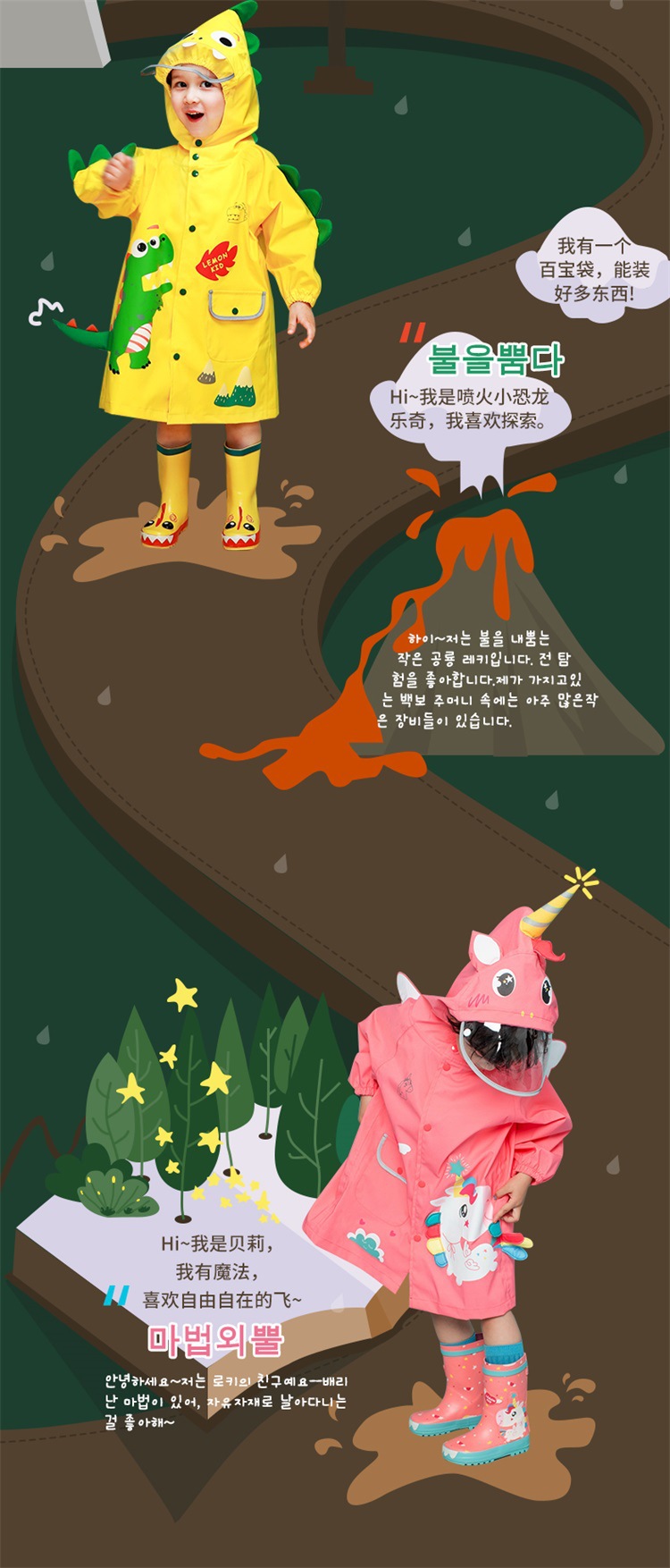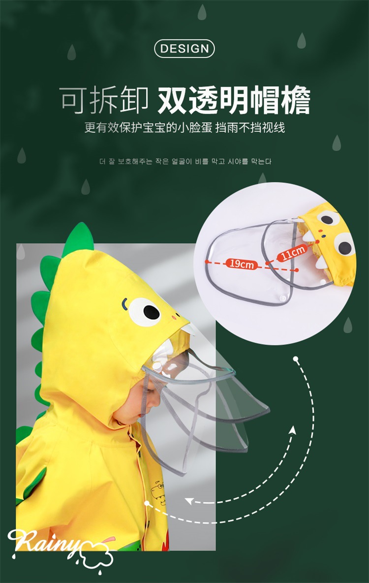 어린이 비옷 소년 소녀 유치원 공룡 판초 귀여운 망토 스타일 학교 가방 초등학생 비옷 분할스토어 가기
