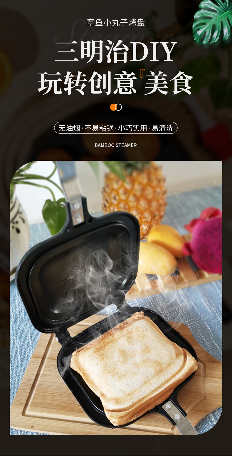 샌드위치 양면 프라이팬 다기능 아침 식사 팬 계란 프라이팬 아티팩트 클립 팬 플랫 비 스틱 팬 가정용 작은 스테이크 팬스토어 가기
