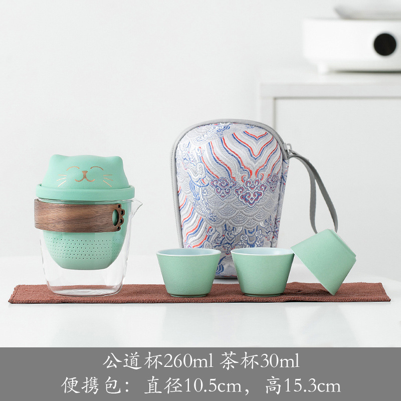• 럭키 고양이 오피스 컵-공작 그린 (휴대용)