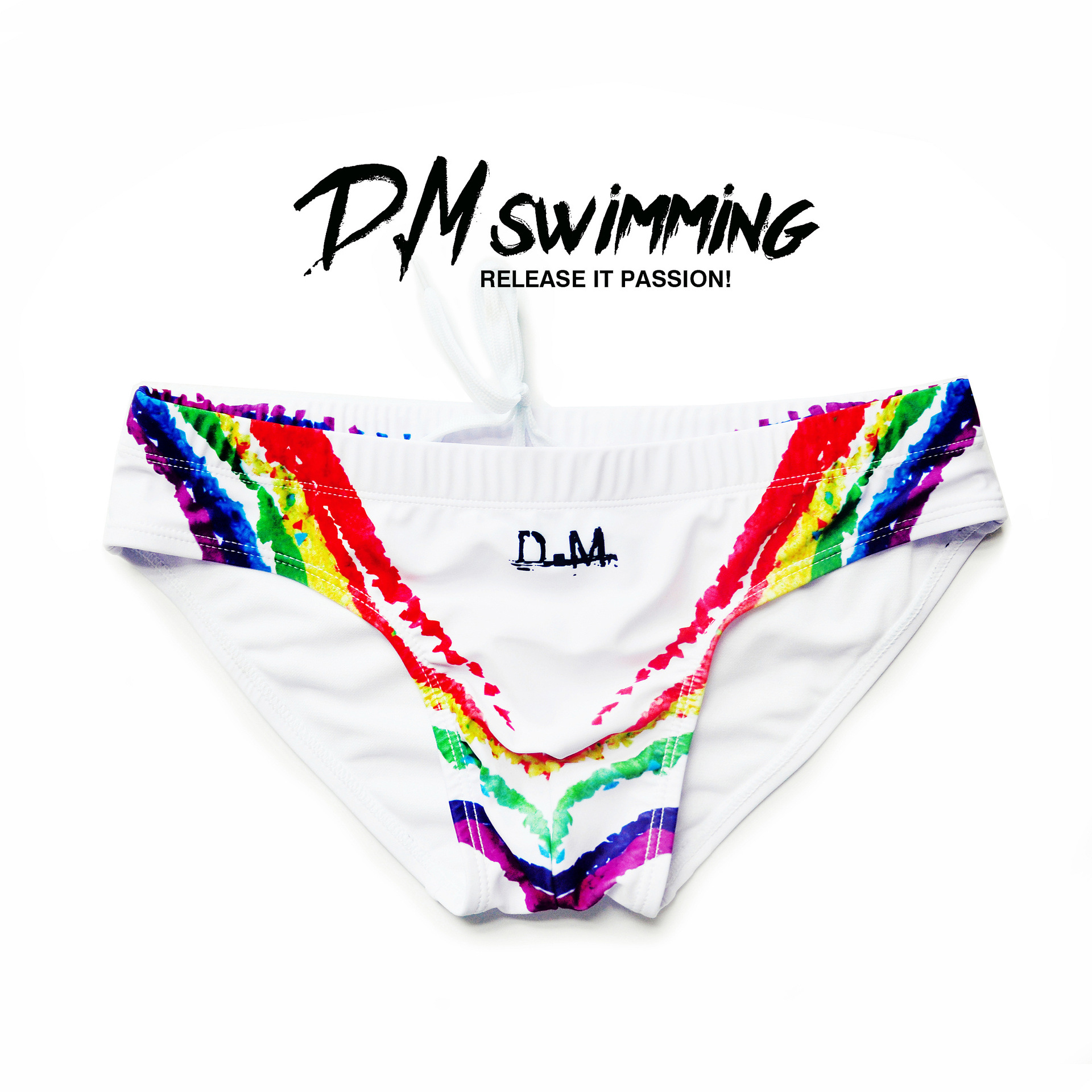 D.M 남자 수영 트렁크 낮은 허리 섹시 사이드 허리 지퍼 유행 남성 패션 인쇄 브리프 꽉 청소년 파티 수영복