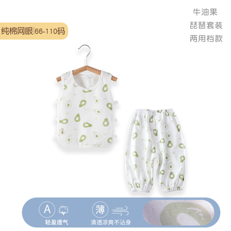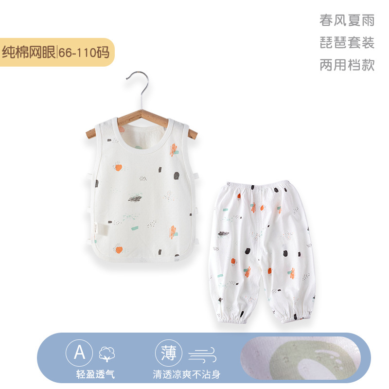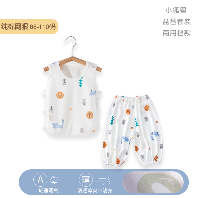 여름 얇은 티셔츠 조끼 세트 순면 남여 공용 아기 민소매 피파 모기 방지 바지 어린이 티셔츠 반바지
