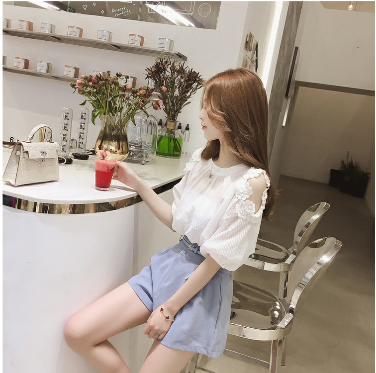 2025 여름 새 스타일 레이스 쉬폰 셔츠 여성 디자인 틈새 계획 탑 반팔 서양식 작은 셔츠 요정 트렌드스토어 가기