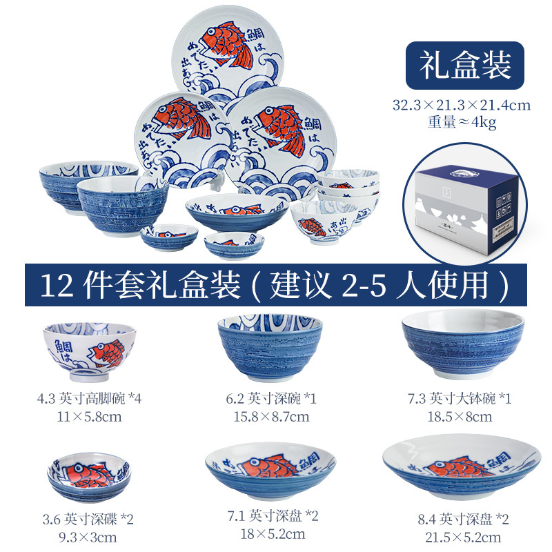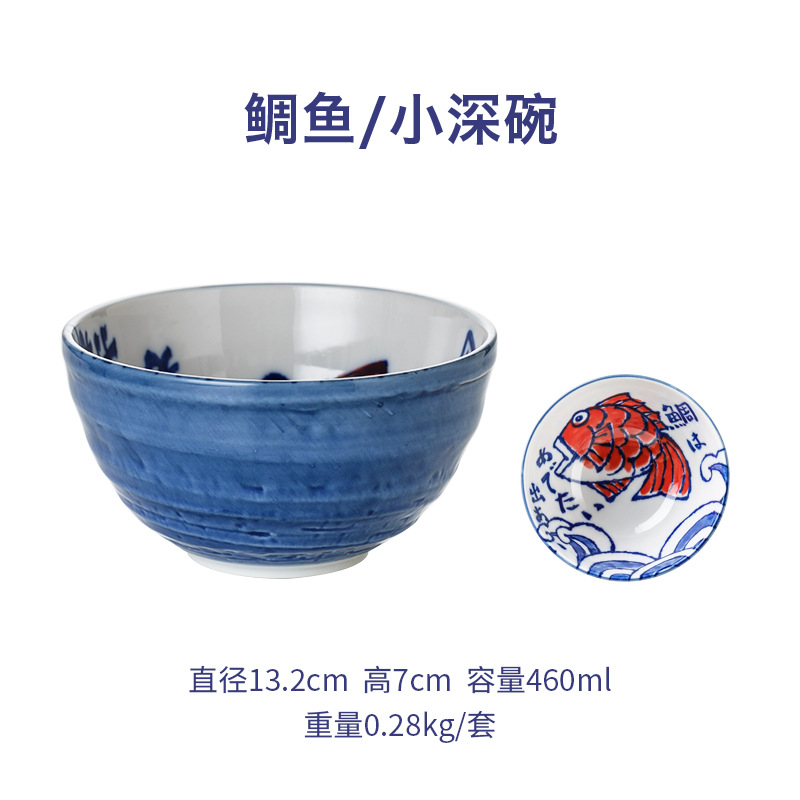일본 수입 스노우볼 도자기 식기, 연연 생선 도자기 그릇, 일본식 접시, 밥그릇 세트, 일본식