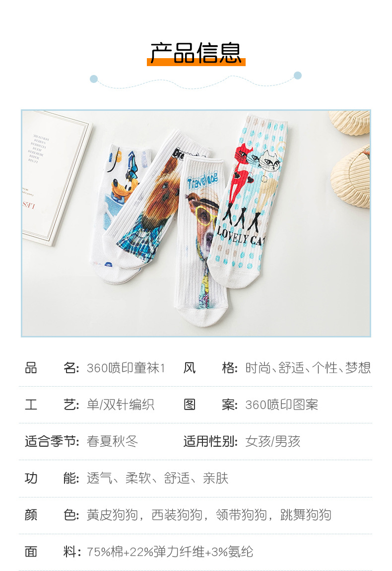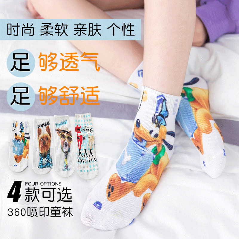 360도 프린트 양말, 땀 흡수 및 통기성 어린이 양말, 긴 면 만화 어린이 양말, 맞춤형 보풀 방지 양말스토어 가기