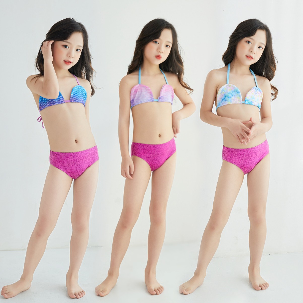 유럽풍 아동 수영복 여아 비키니 세트 인어 스타일 분리형 소형 중형 대형 아동복