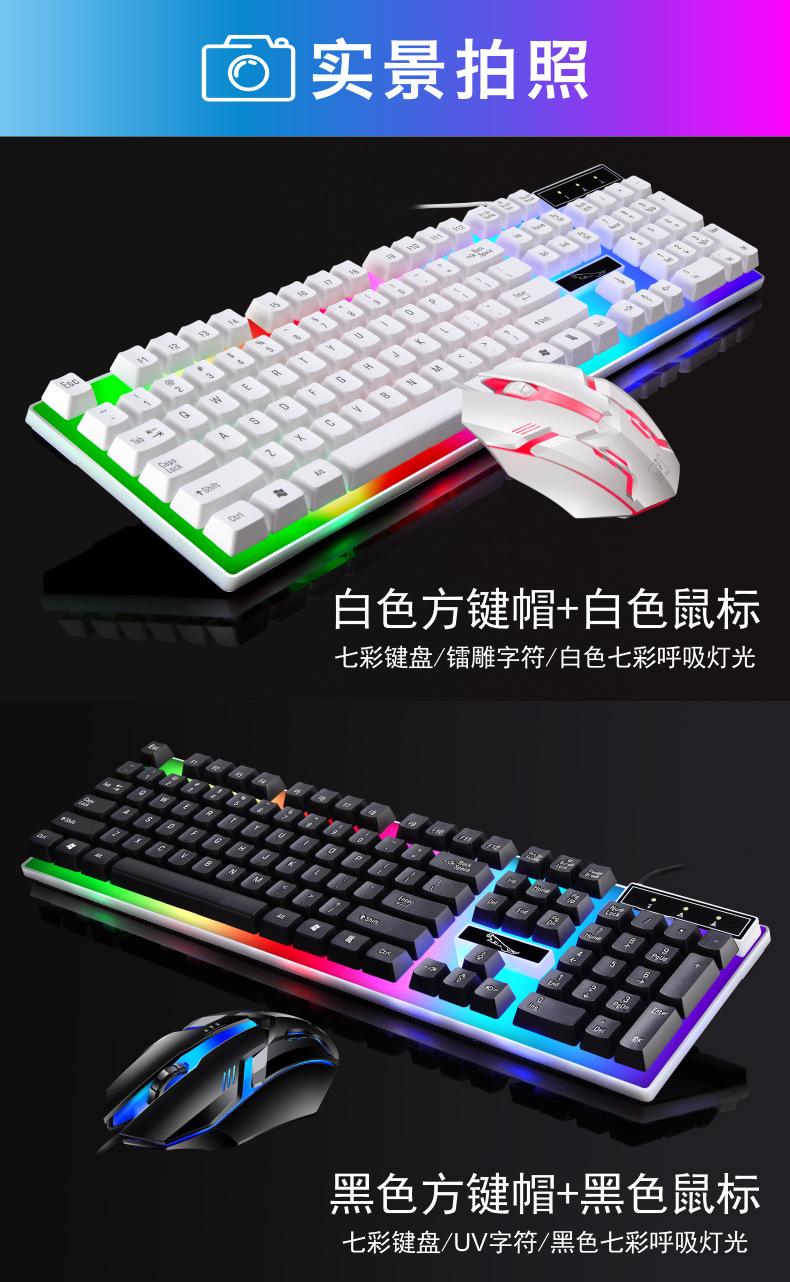 빛 표범 G21B 화려한 빛나는 USB 유선 키보드 마우스 세트 사무실 비즈니스 게임 DIY 액세서리를 쫓고