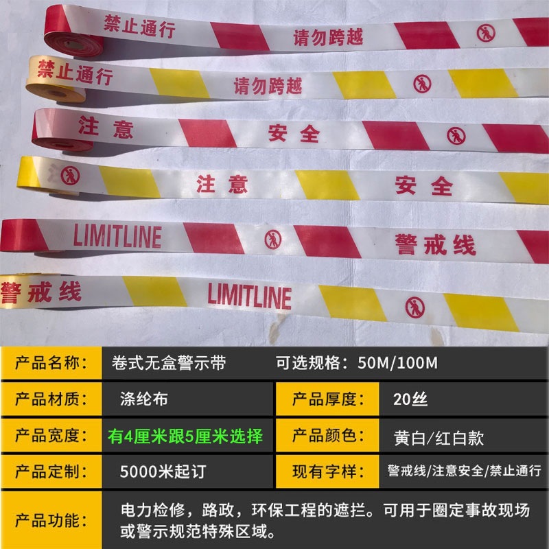 【主要用途】本产品一般常用于施工地段,危险地段和交通事故,突发事件的隔离。以及电力检修、路政、环保工程的遮栏。可用于圈定事故现场或警示规范特殊区域。护栏带使用方便,不会污染现场环境。