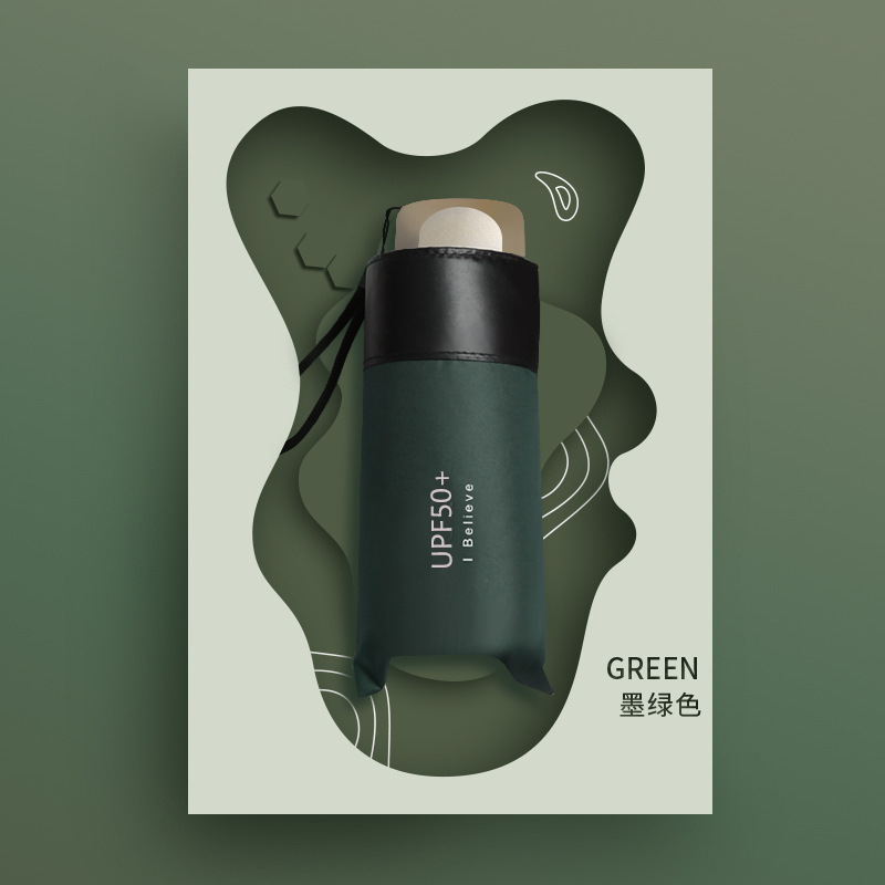 • 8 뼈 주머니 우산 다크 그린-캡슐 상자 보내기