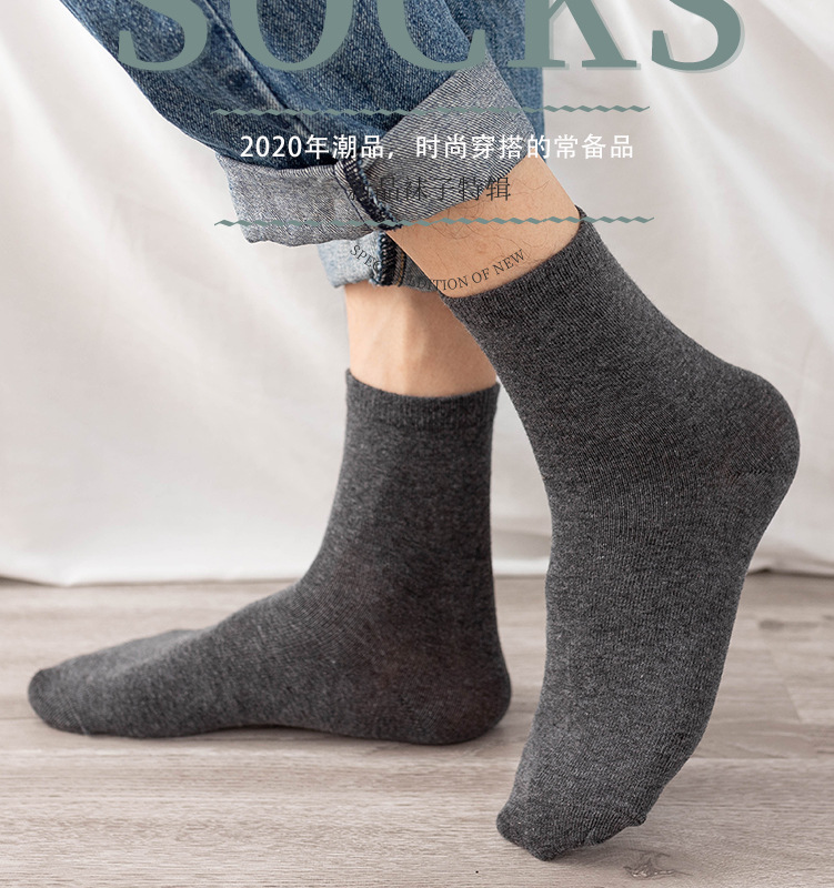 남성용 양말 흑백 회색 단색 비즈니스 남성 중간 길이 양말 일회용 양말 남성 양말 도매 가을 겨울용