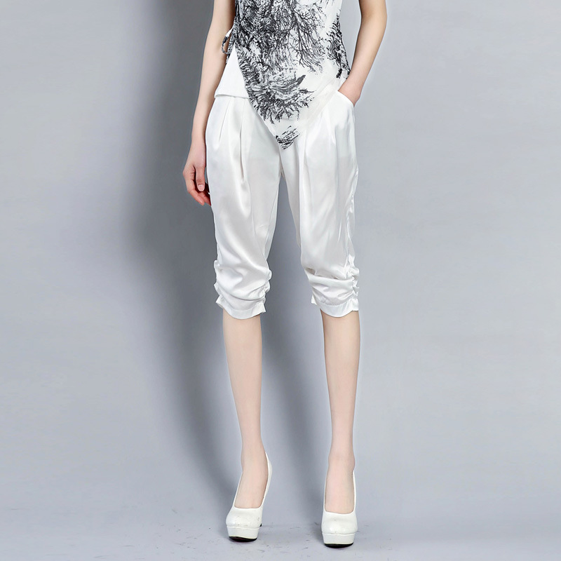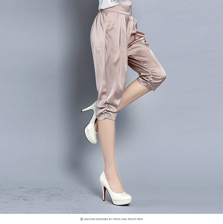 여름 2020 새로운 유럽과 미국 스트레치 새틴 하렘 바지 크롭 바지 캐주얼 플러스 사이즈 모조 실크 여성 바지스토어 가기