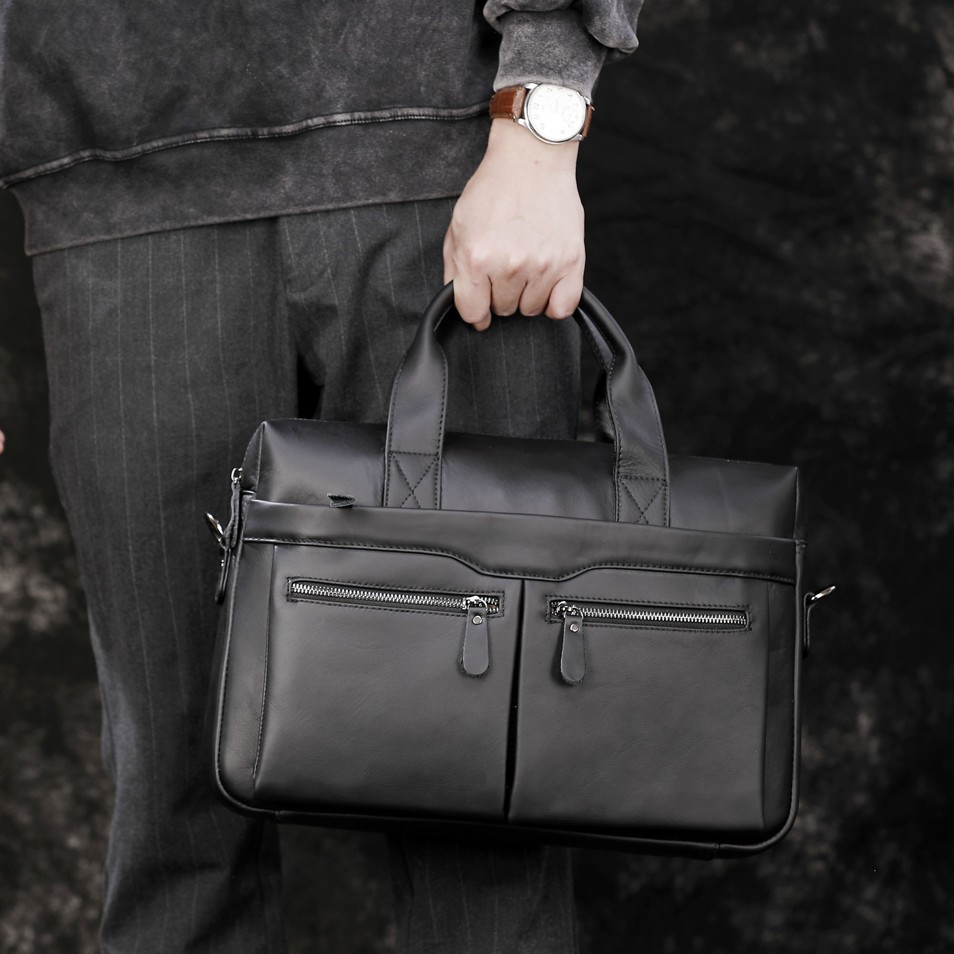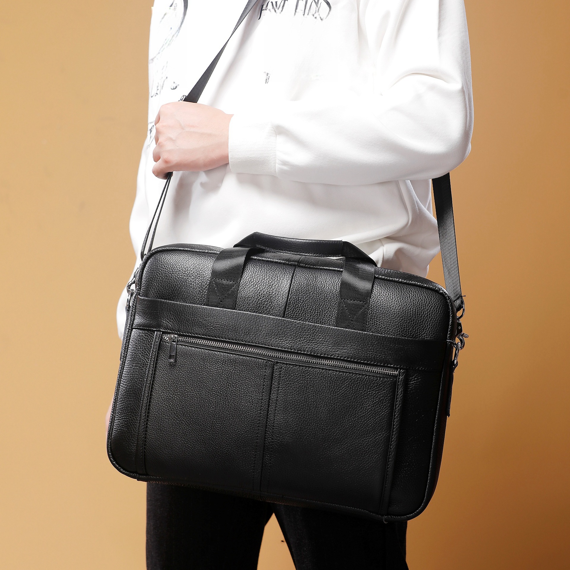 남성용 가죽 숄더백 크로스백 첫 번째 층 소가죽 가로형 컴퓨터 가방 2025 신형 숄더백 도매스토어 가기