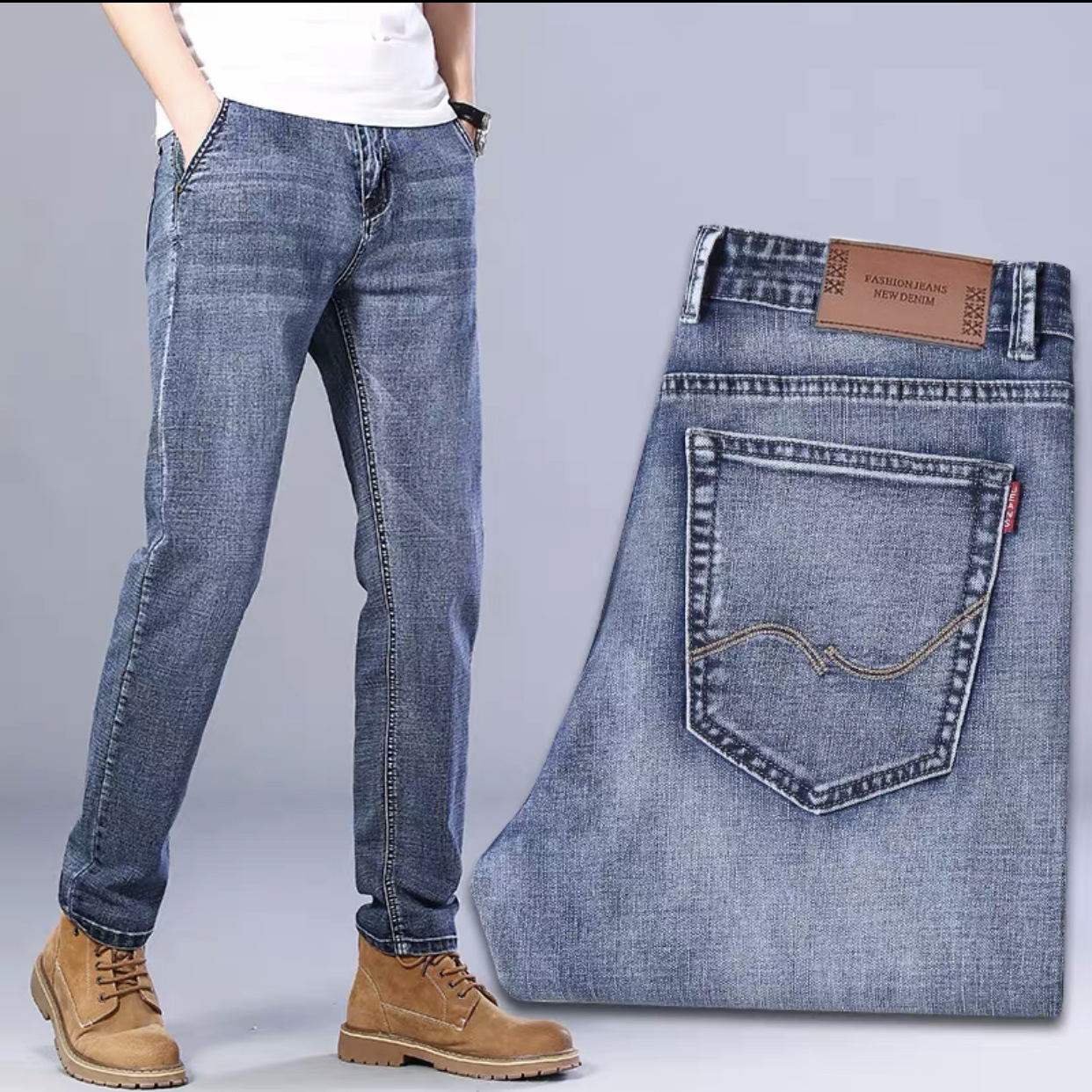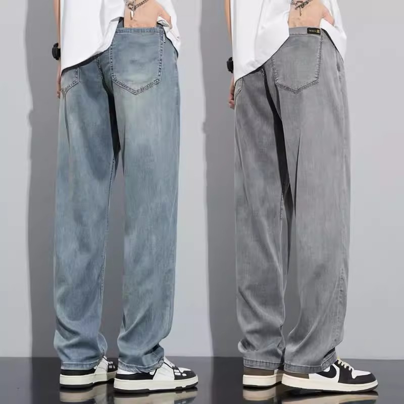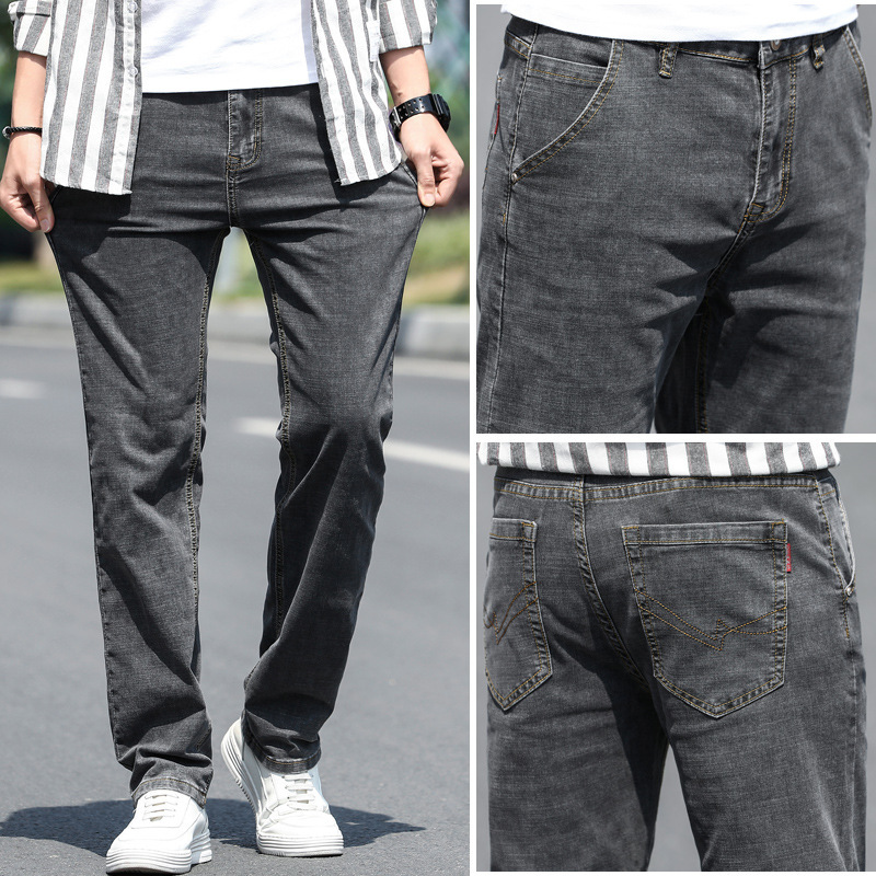 고급 청바지 남성용 스트레이트 느슨한 여름 얇은 중년 연기 회색 캐주얼 바지 봄과 가을 회색 남성 바지스토어 가기
