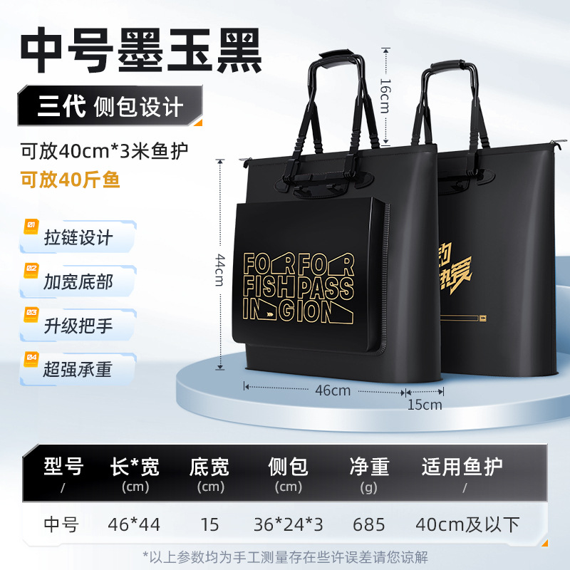 • [3 세대] 검은 낚시 장비 가방 (15cm 바닥 폭 지퍼 사이드 포켓) 매체