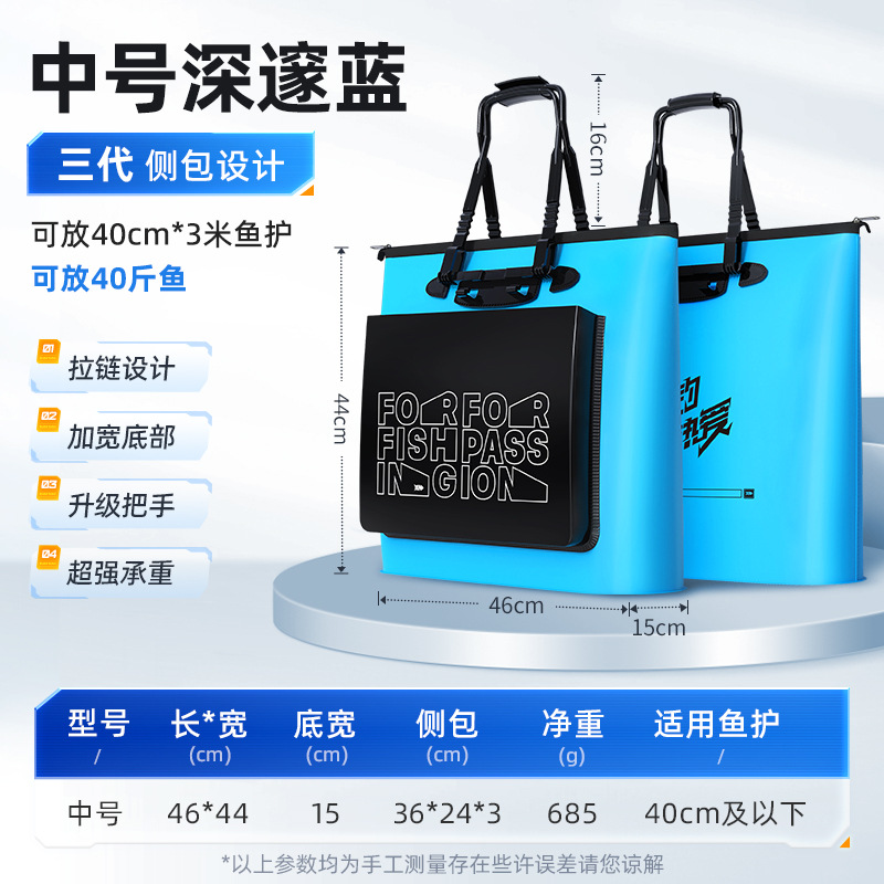 • [3 세대] 블루 낚시 장비 가방 (15cm 하단 폭 지퍼 사이드 포켓) 매체