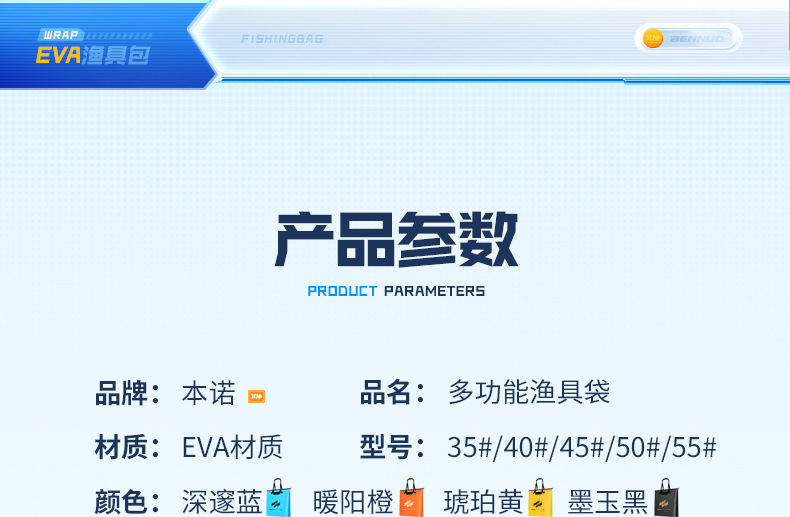 • [2 세대] 블루 낚시 태클 백 (9.5cm 바닥 폭 지퍼) 매체