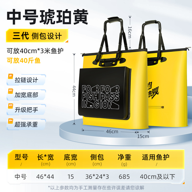 • [3 세대] 노란색 낚시 도구 가방 (15cm 하단 폭 지퍼 사이드 포켓) 매체