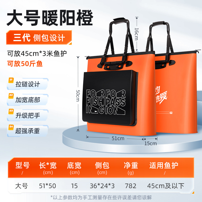 • [3 세대] 오렌지 낚시 가방 (15cm 바닥 폭 지퍼 사이드 포켓) 큰