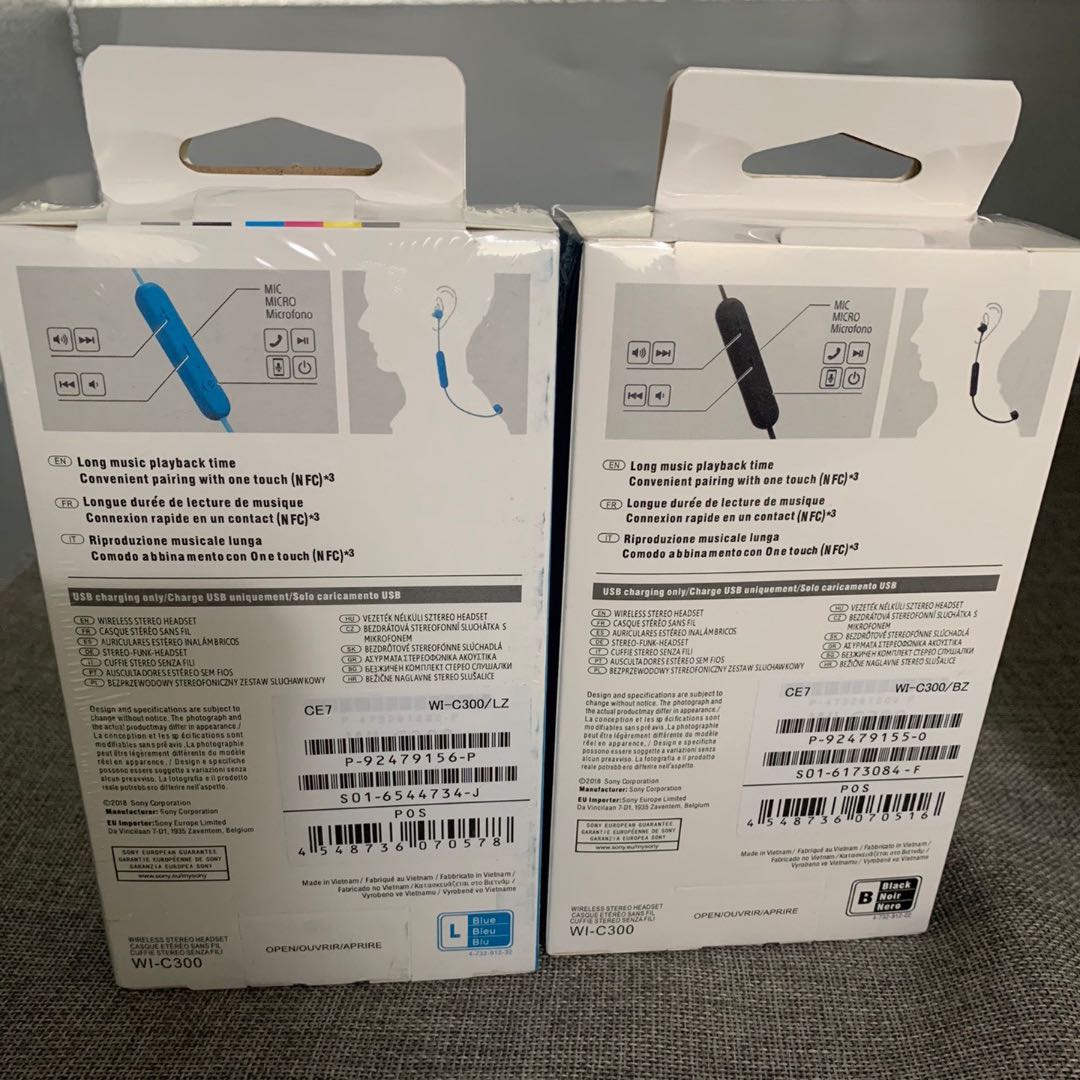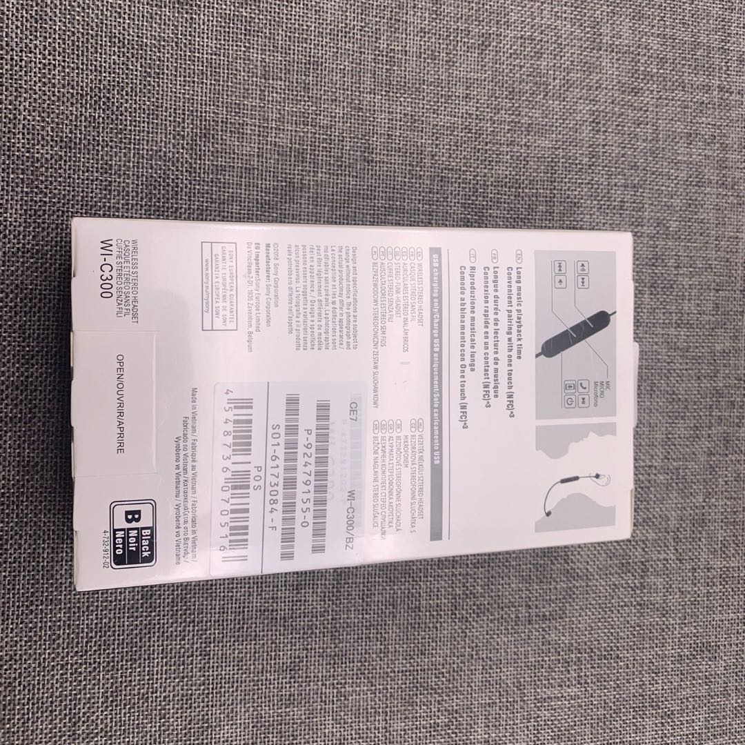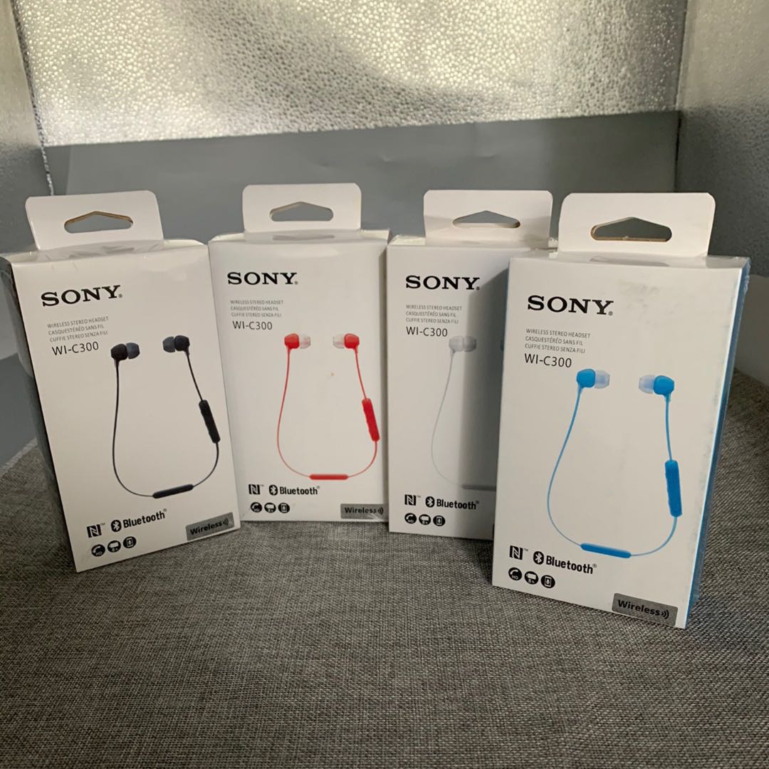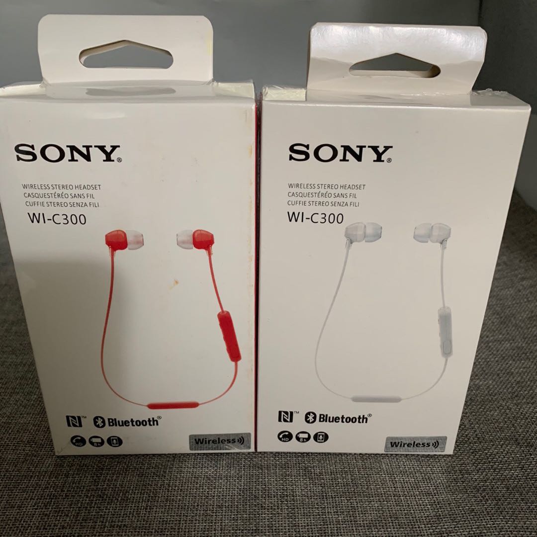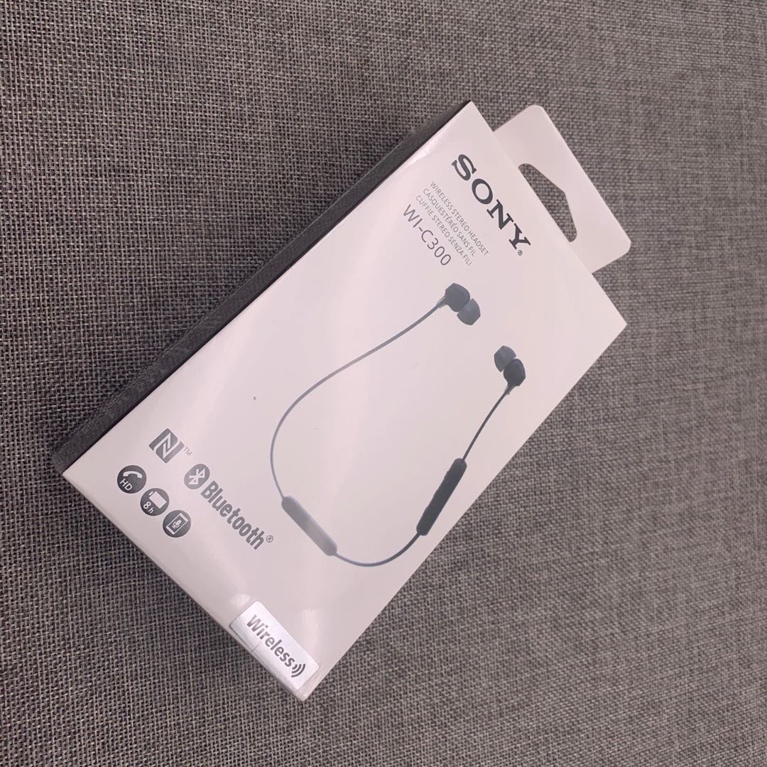 索尼SONY WI-C300 无线蓝牙立体声耳机 索尼WI-C300 无线蓝牙立体声耳机照片为实物拍摄。颜色黑白蓝红,支持nfc海外版全新原封耳机标配:耳机数据线备用耳套两对,现货4个颜色,要什么颜色联系客服,也可以留言