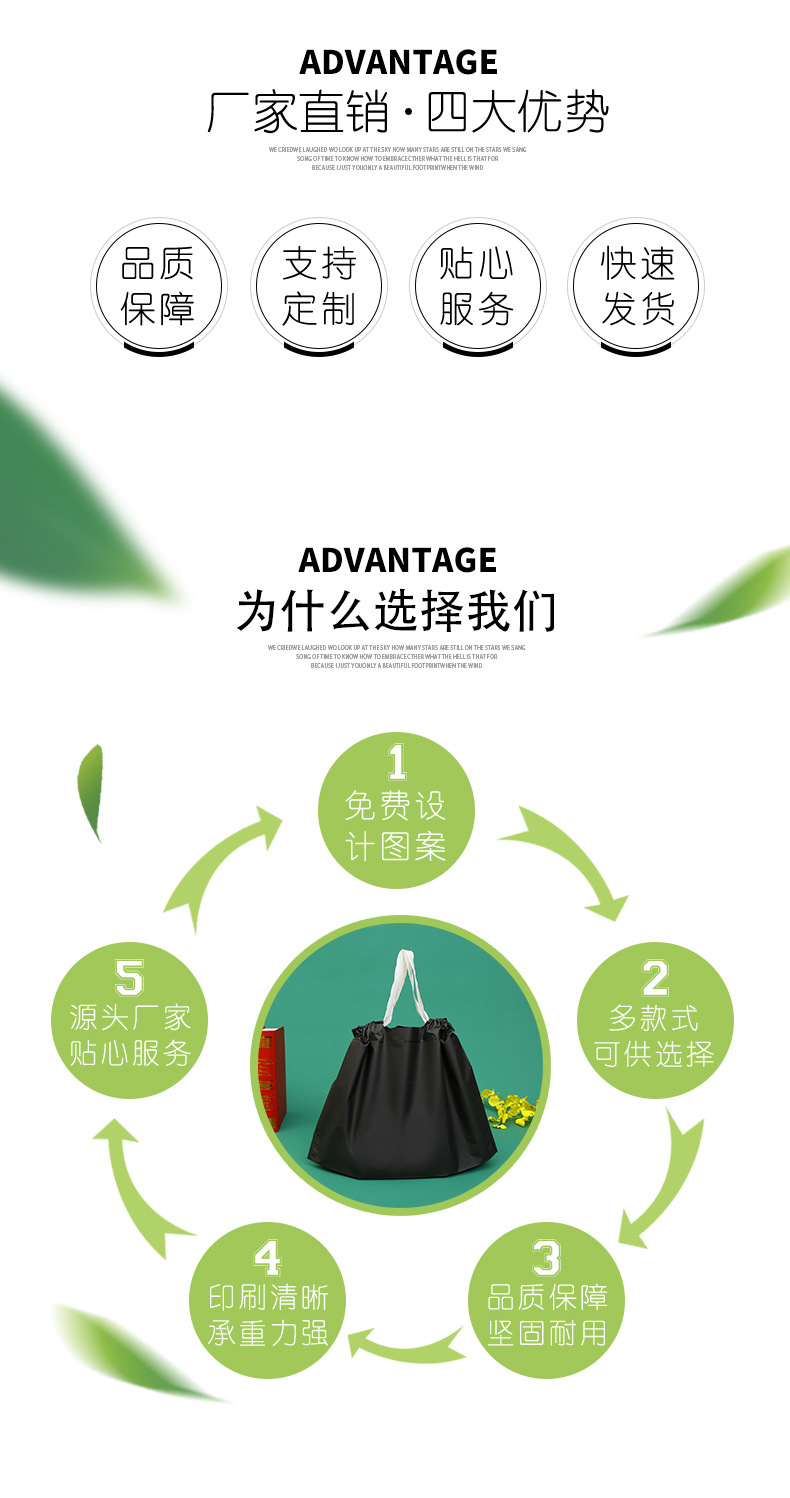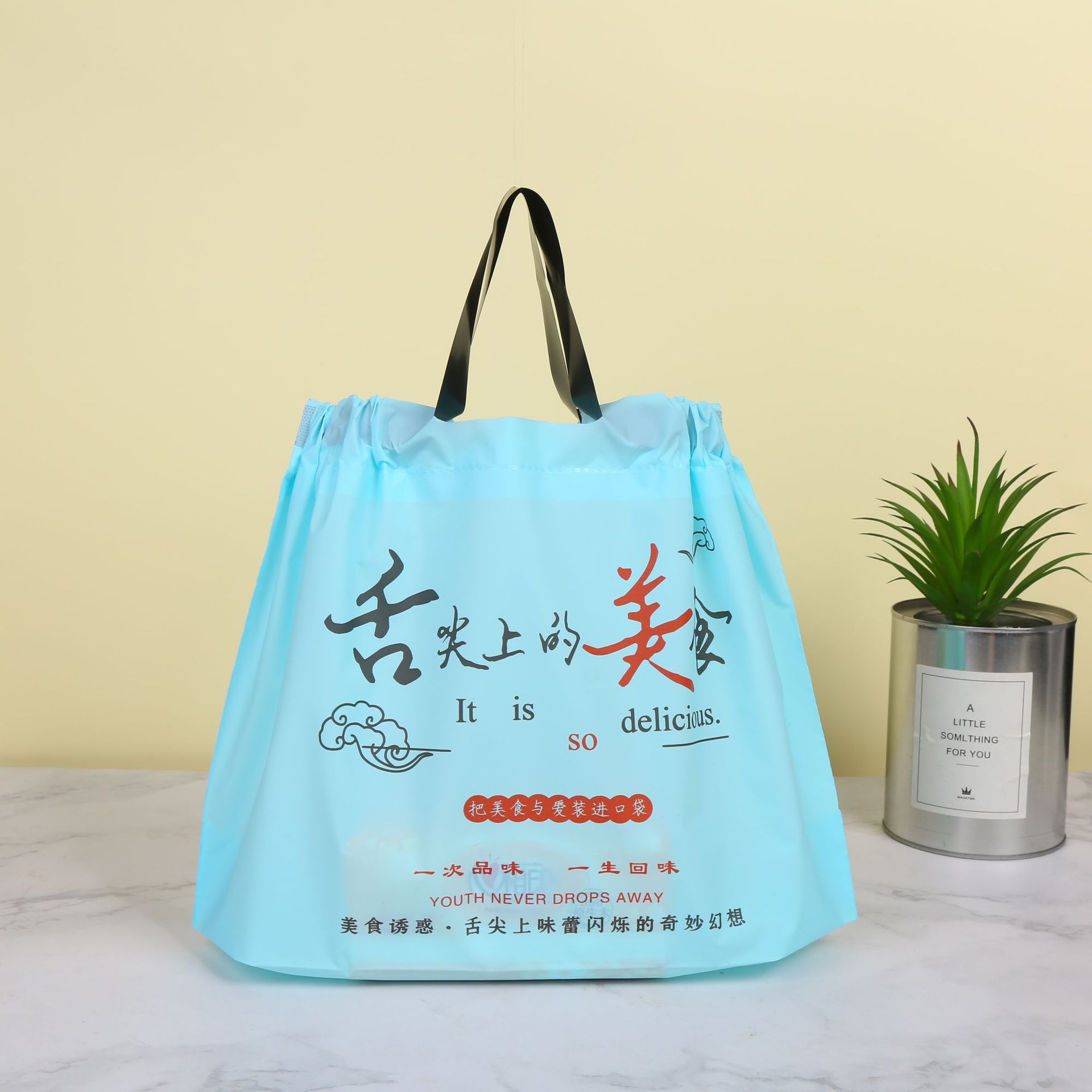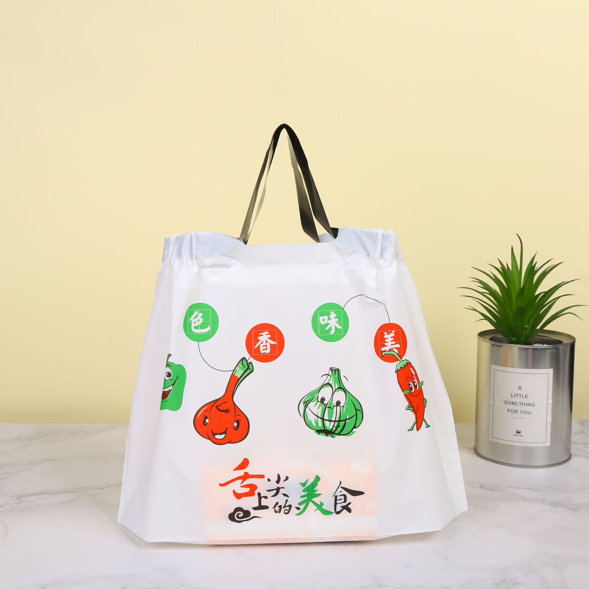 번들 포켓 일회용 테이크 아웃 포장 가방 휴대용 두꺼운 식품 가방 취사 졸라매는 끈 의류 매장 비닐 가방