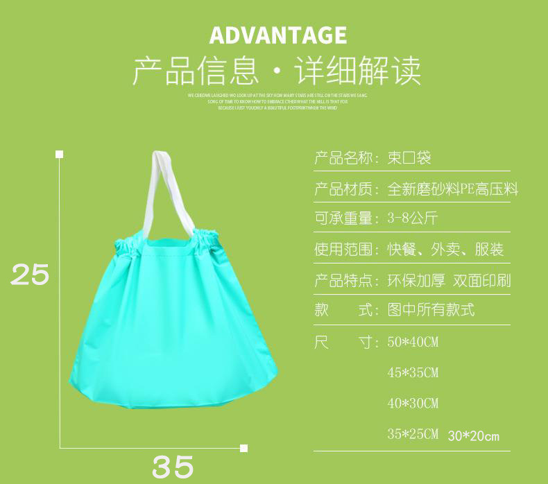 번들 포켓 일회용 테이크 아웃 포장 가방 휴대용 두꺼운 식품 가방 취사 졸라매는 끈 의류 매장 비닐 가방스토어 가기