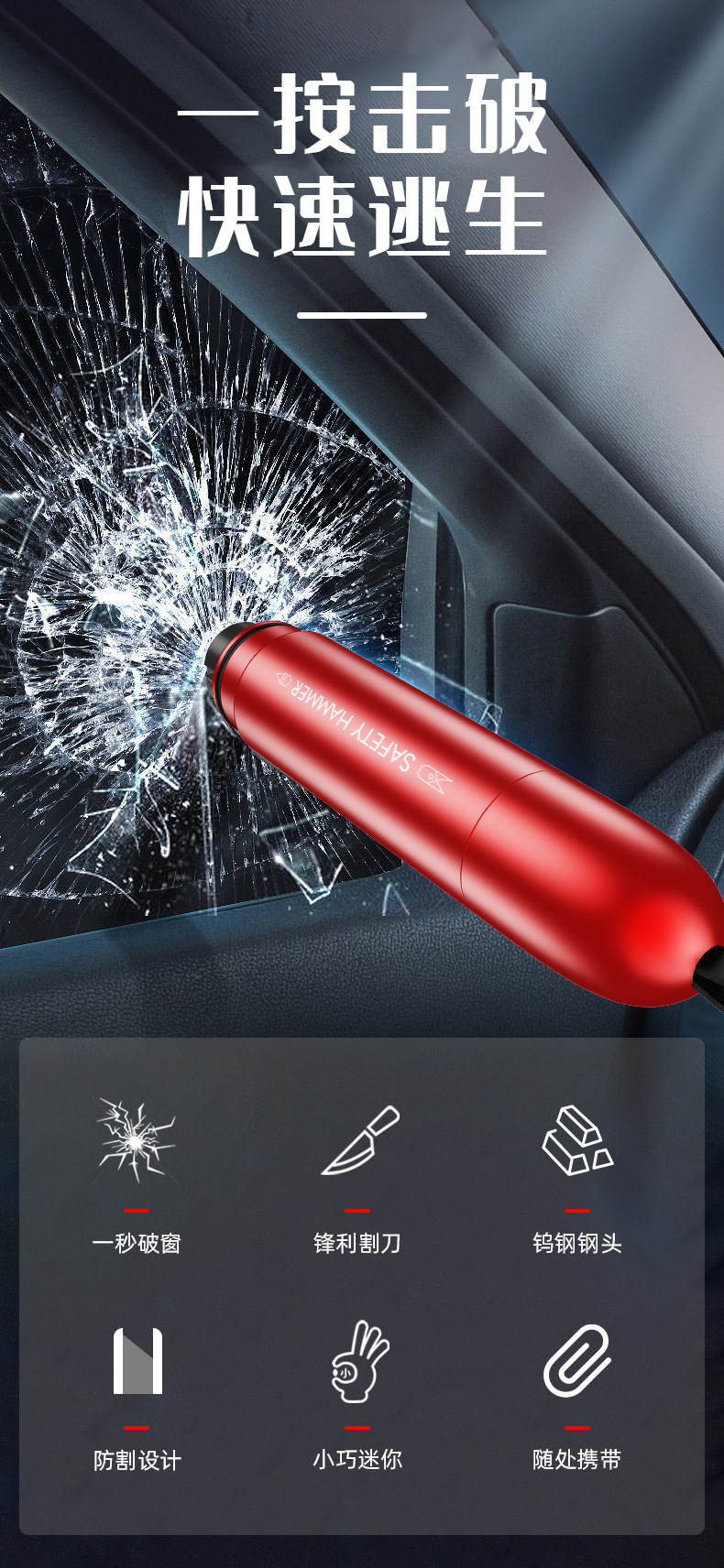 자동차 안전 망치 자동차 창 차단기 다기능 탈출 망치 안전 벨트 커터 미니 휴대용 비상 도구