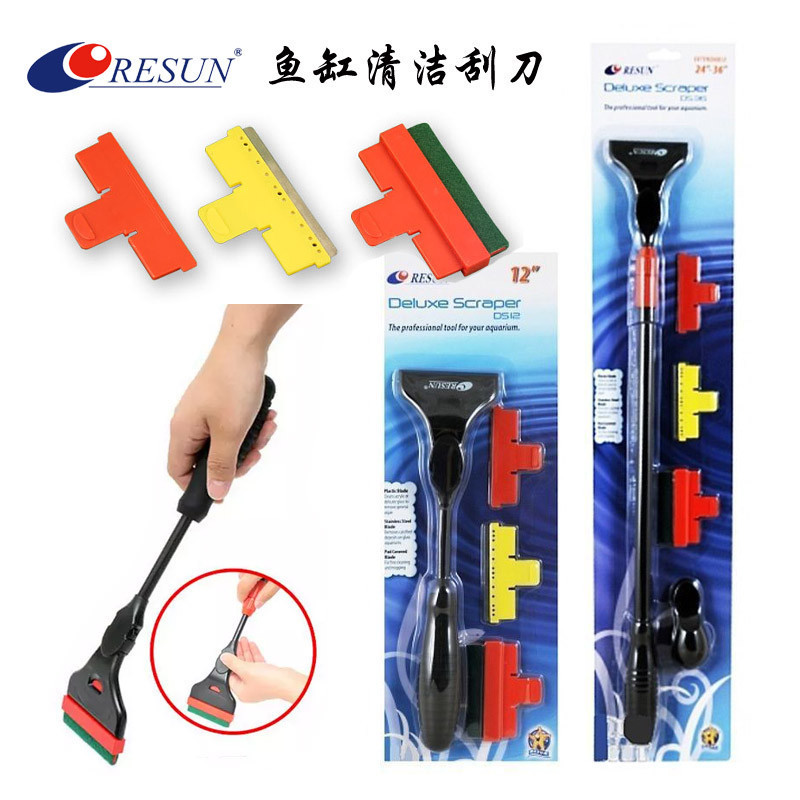 Risheng Three-in-One 수족관 어항 청소 브러시 조류 제거 스크레이퍼 평평한 모래 다기능 어항 브러시 개폐식스토어 가기