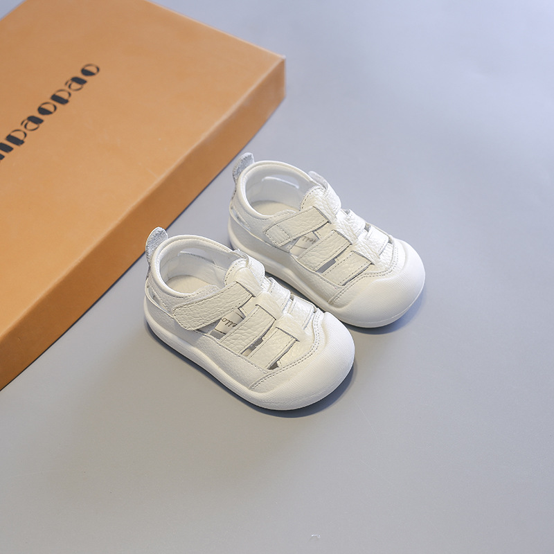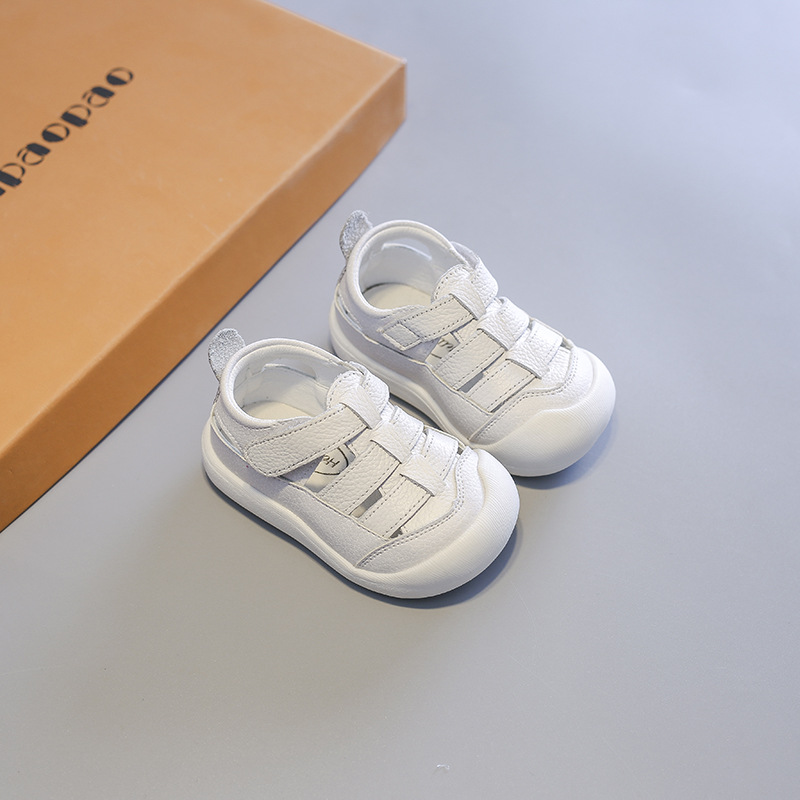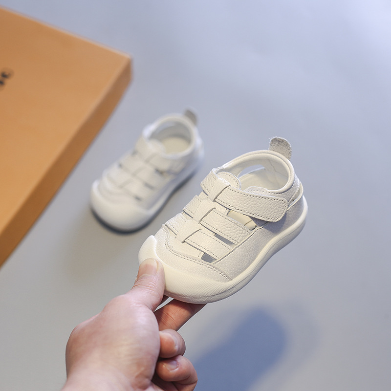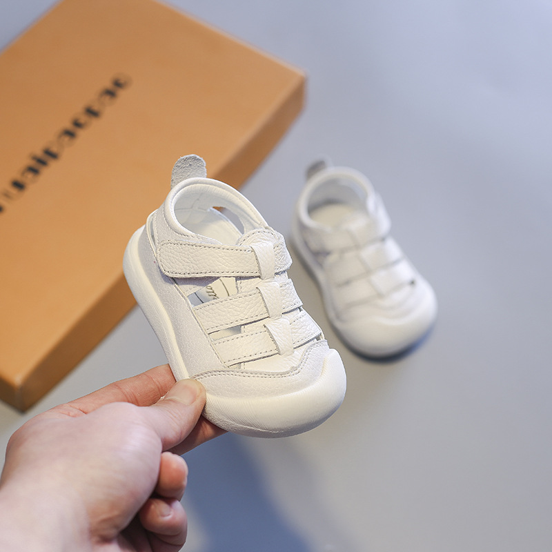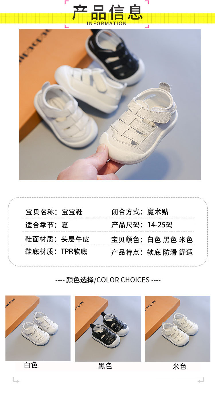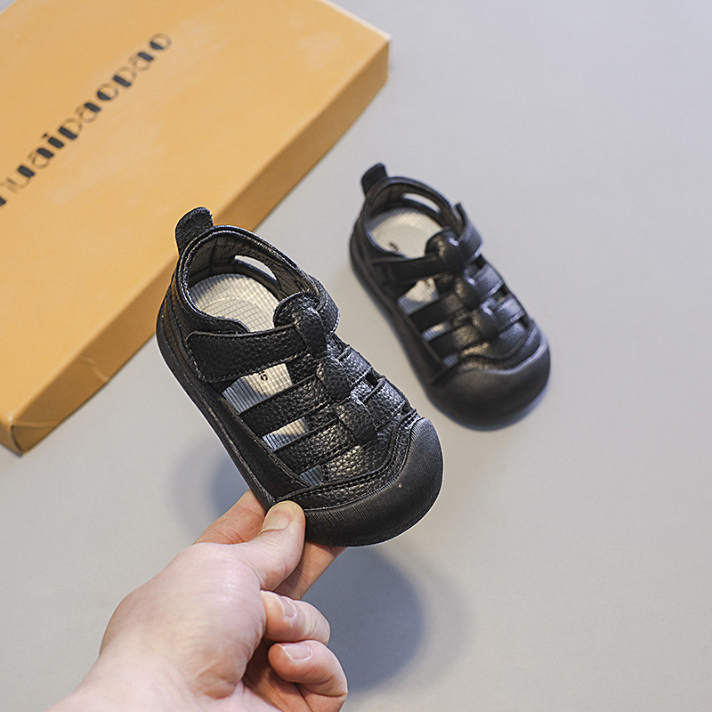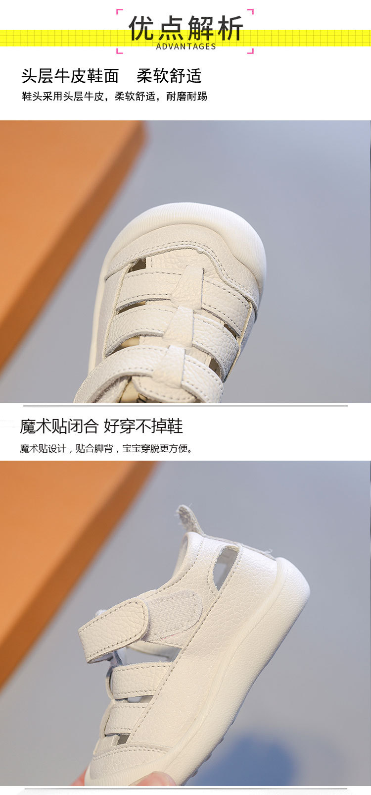 2023 봄과 여름 가죽 아기 샌들 가방 머리 부드러운 밑창 어린이 신발 벨크로 아기 신발스토어 가기