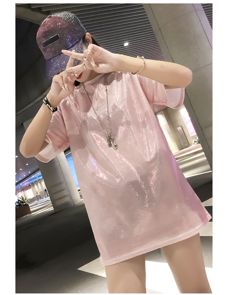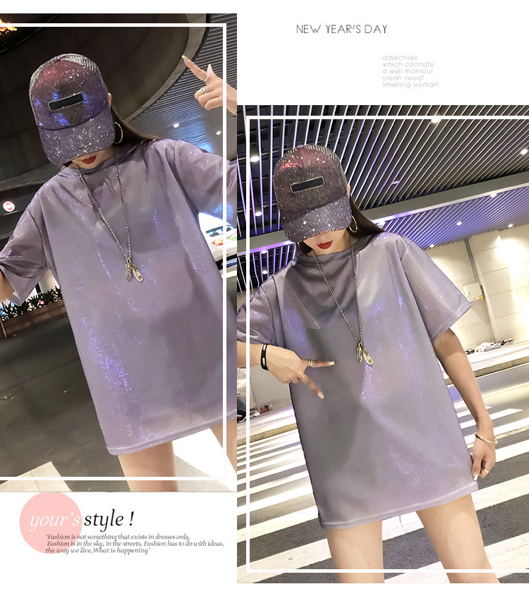 2020 실종 여성 티셔츠 낮은 옷 중간 길이 느슨한 긴팔 2018 여름 새로운 밝은 실크 반팔 바디스토어 가기