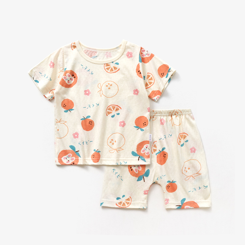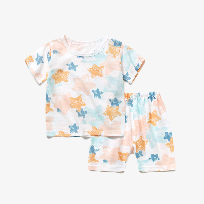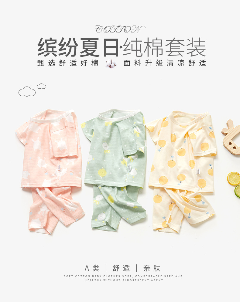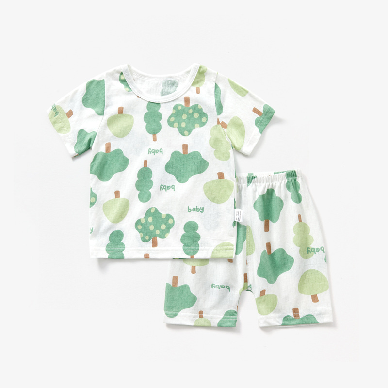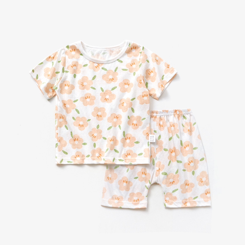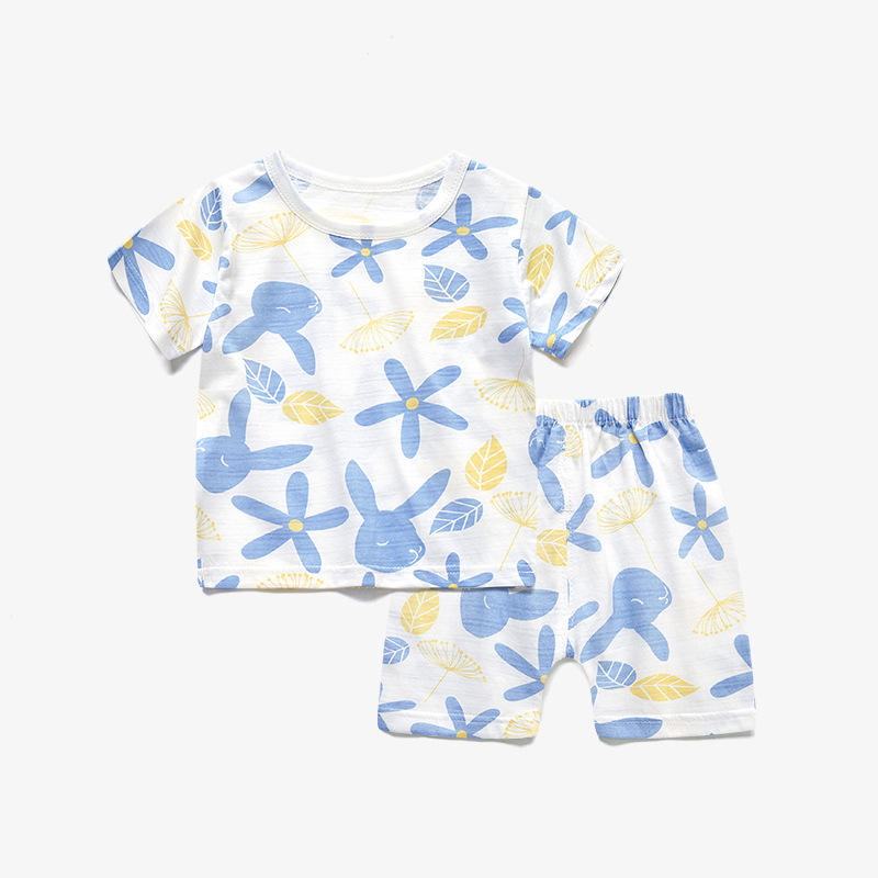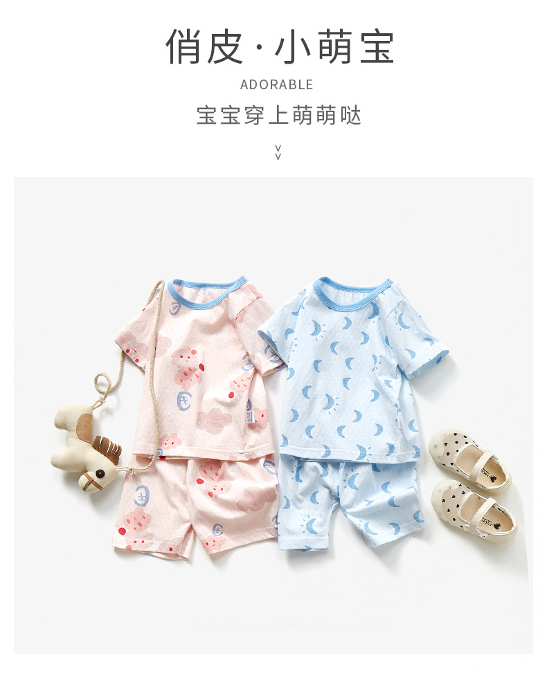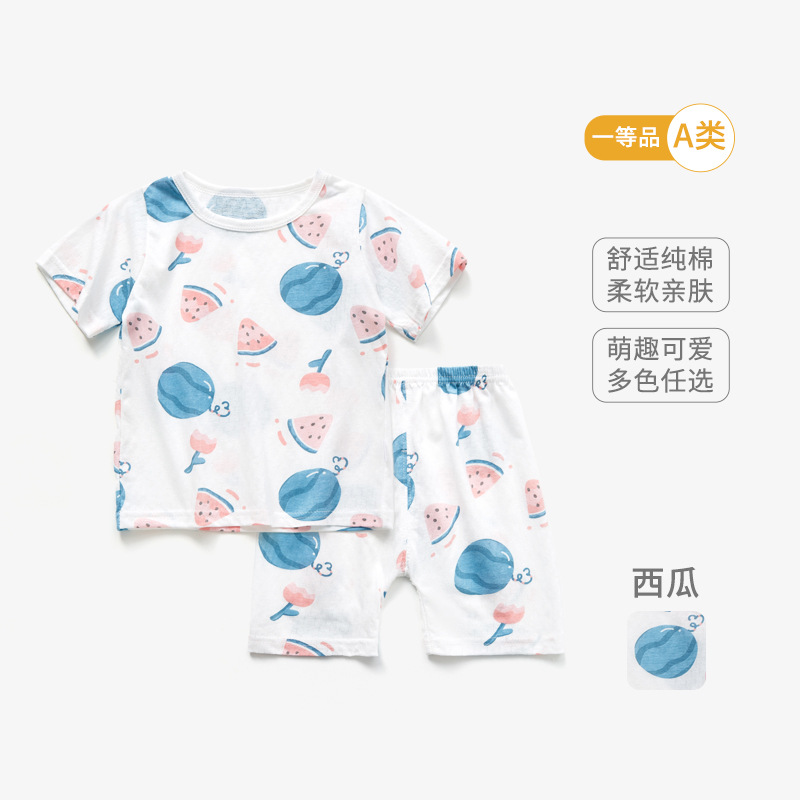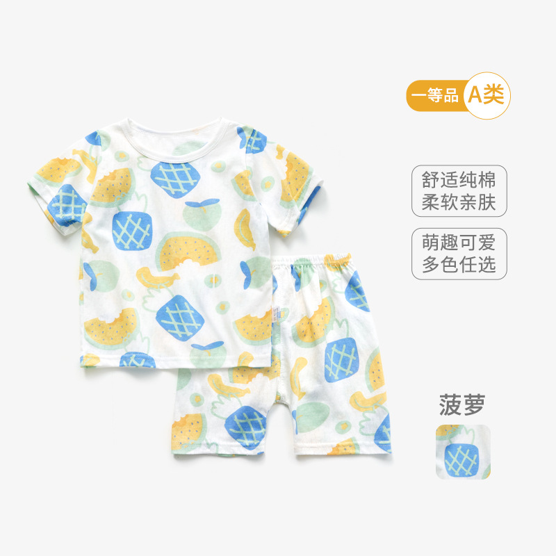 남자와 여자의 아기 세트 얇은 면 아기 잠옷 어린이 여름 옷 어린이 분할 반팔 반바지 가정 의류스토어 가기