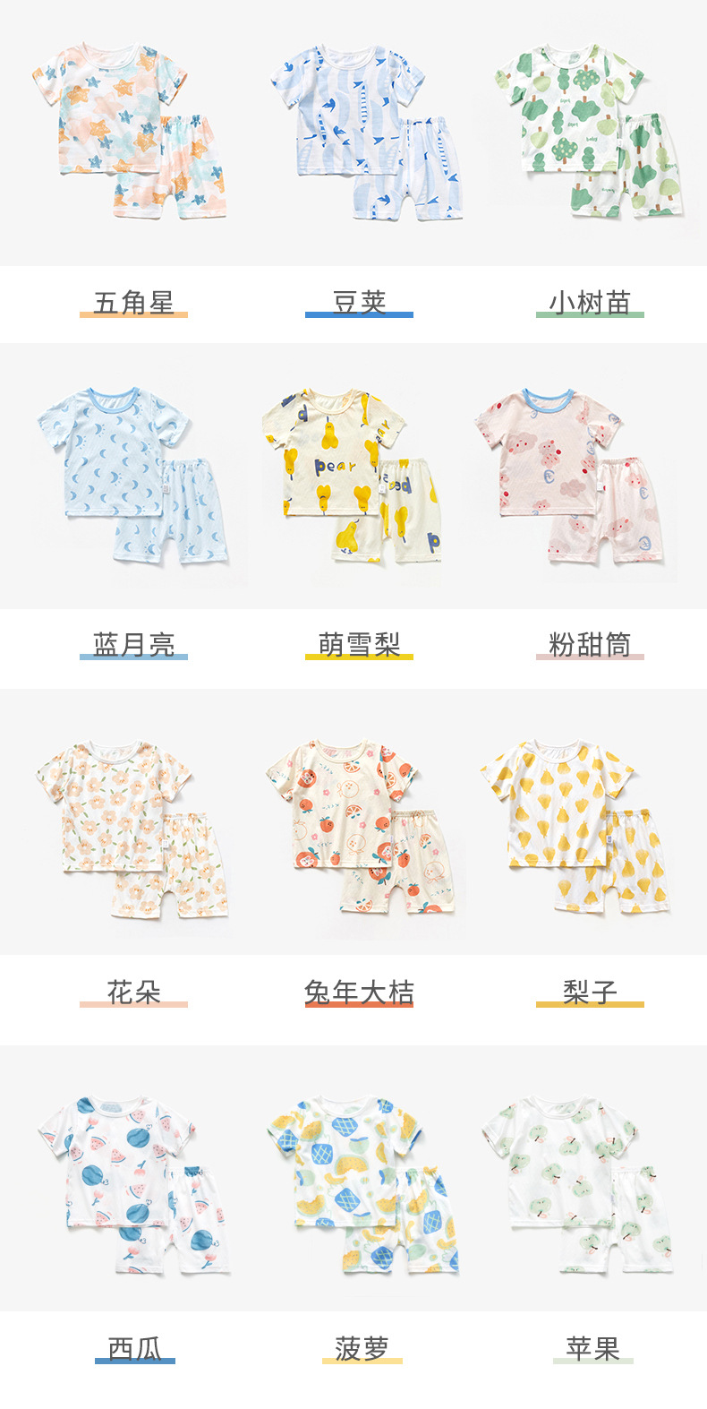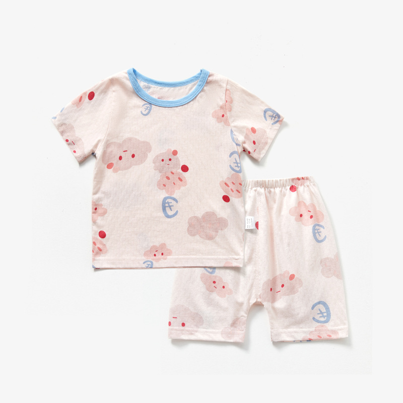 남자와 여자의 아기 세트 얇은 면 아기 잠옷 어린이 여름 옷 어린이 분할 반팔 반바지 가정 의류
