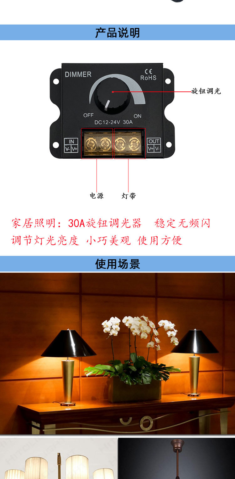 Xilai 조명 수동 led 단색 디밍 컨트롤러 단색 조명 모듈 손잡이 디밍 스위치 컨트롤러 30A스토어 가기
