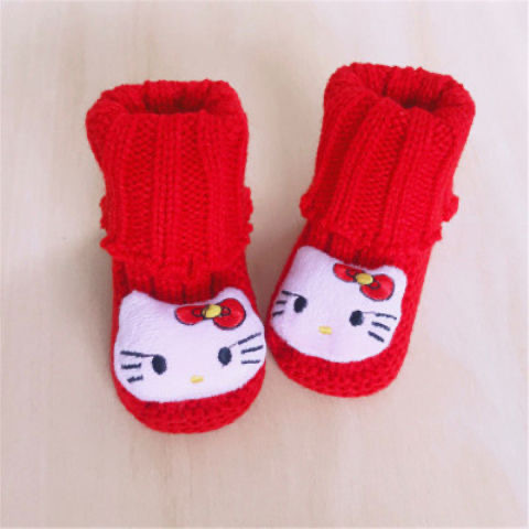수제 완성 된 니트 봄과 가을 아기 울 신발 신생아 울 신발 아기 니트 신발 0-3-6 개월스토어 가기