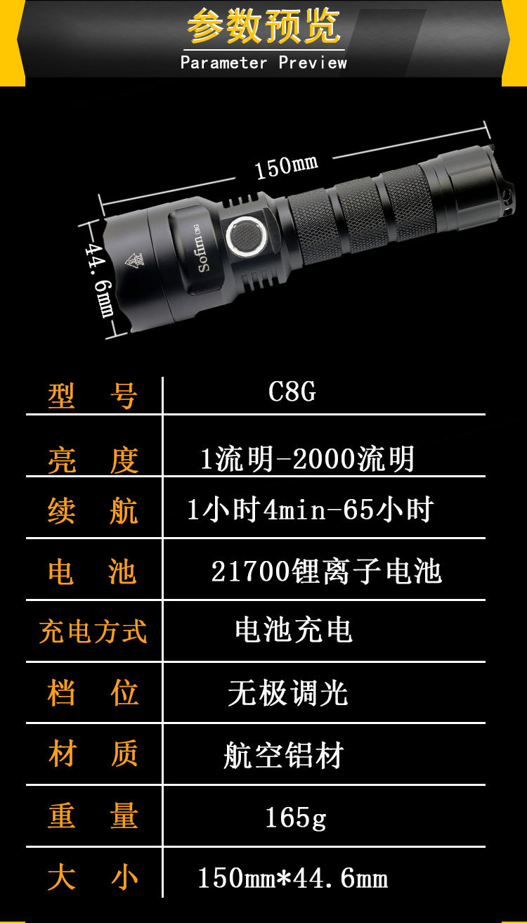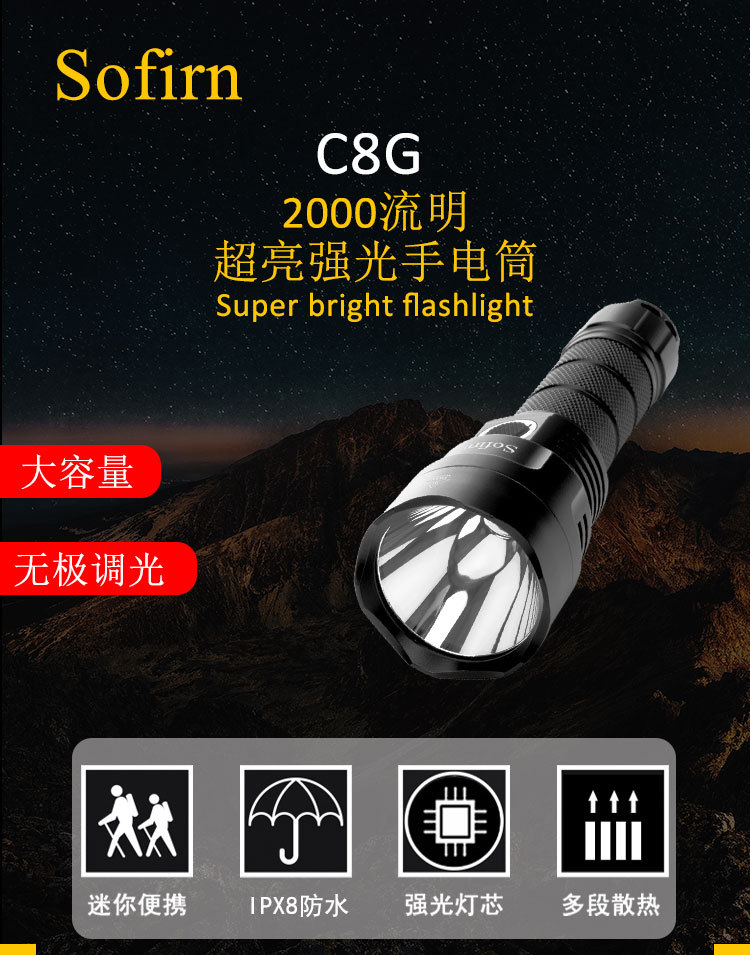 소피엔 C8G 소피엔 강한 빛 손전등 2000LM 야외 캠핑 가정용 비상 조명 램프스토어 가기