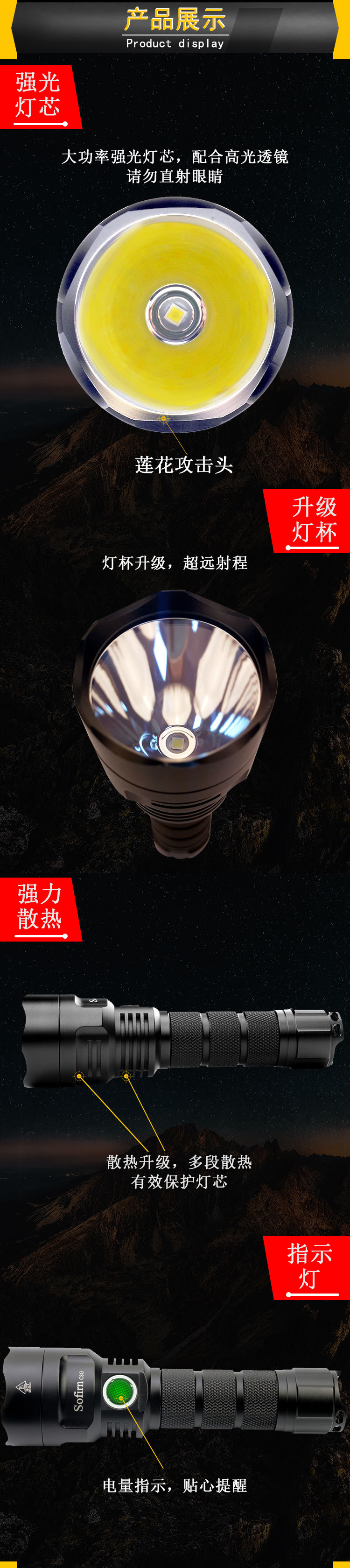 소피엔 C8G 소피엔 강한 빛 손전등 2000LM 야외 캠핑 가정용 비상 조명 램프