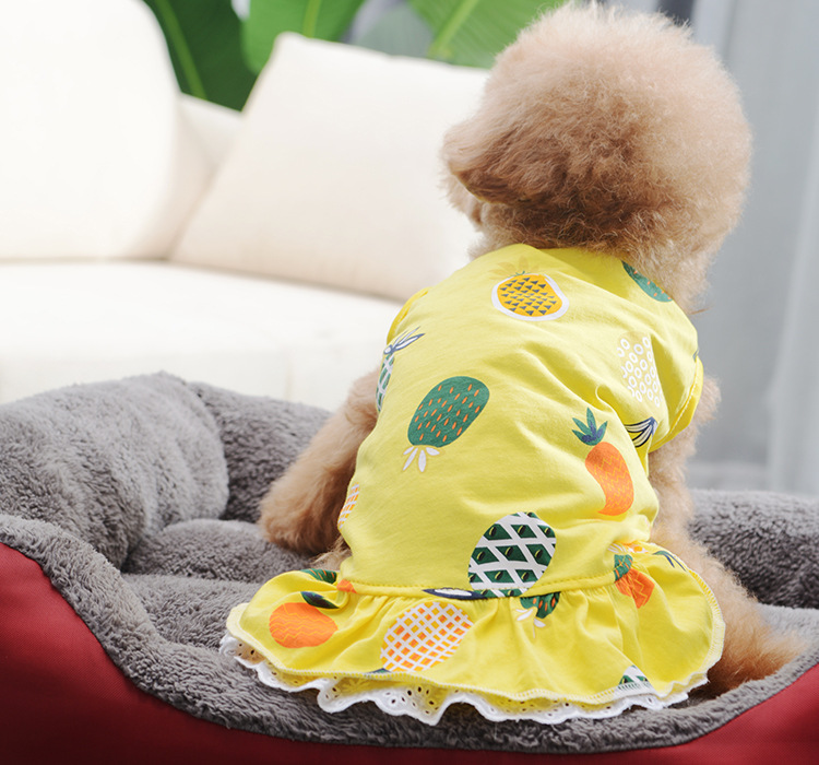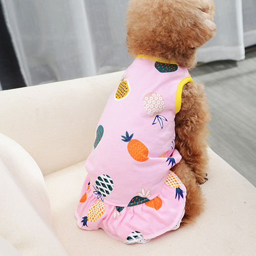 애완 동물 의류 애완 동물 의류 봄과 여름 개 의류 개 의류 애완 동물 용품 도매 파인애플 스커트스토어 가기