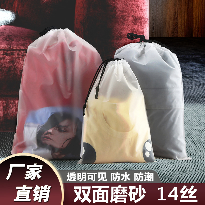 젖빛 페 드로스트링 백 여행 드로스트링 포켓 속옷 양말 마감 포장 보관 비닐 봉투 인쇄 로고스토어 가기